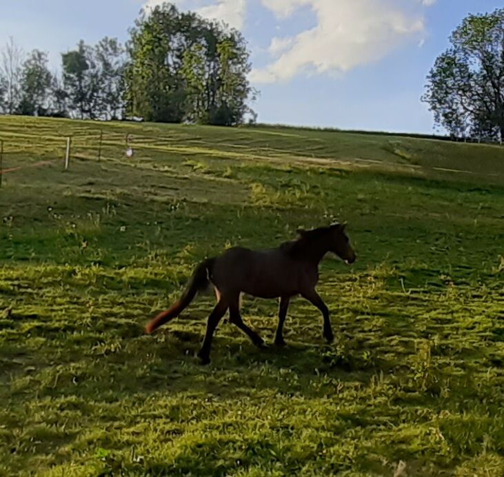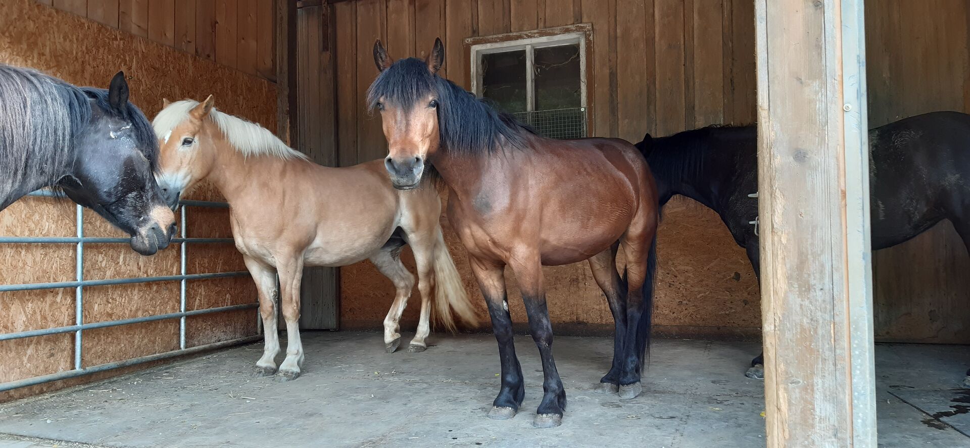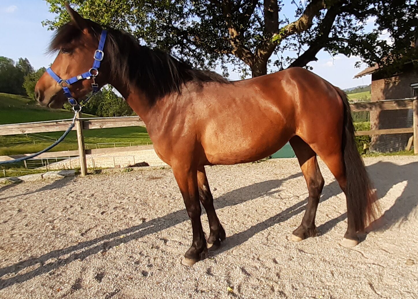3 year old Bardigiano mare for sale - Svevia is a 3 year old beautiful Bardigiano mare with Arabian influence. Her current height is 1,41 m. She loves to be groomed and is always happy to come out of the herd to people. Has only been lightly halter lunged so far and is now ready to learn more. Has very good gaits. In the herd in the rank in the middle.