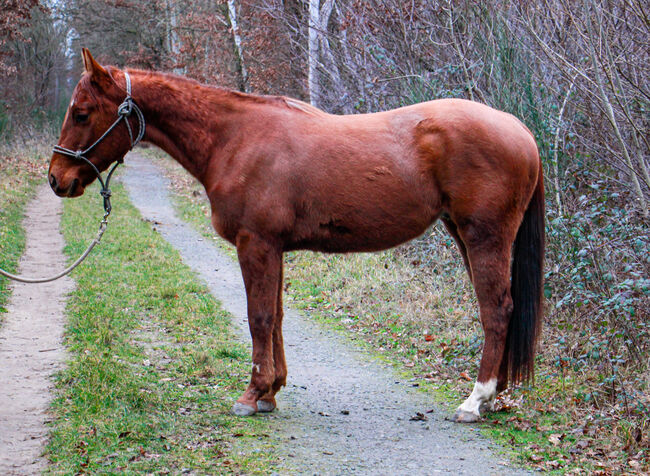 Regularly vaccinated and wormed. Knows the farrier and also trailer rides.