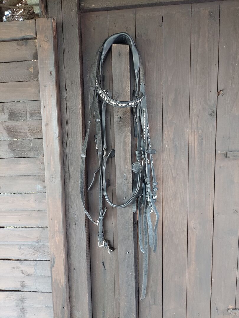 Anatomically shaped snaffle with reins - Sell here an anatomically shaped bridle with soft neck piece. She was jz. 1½ years in my possession, by the death of my mare I would now like to pass it on so that it does not get dusty... Have always taken good care of her over the years. Would be happy if she finds a new owner. Sell it as a complete set with the glitter reins. Shipping possible at cost.