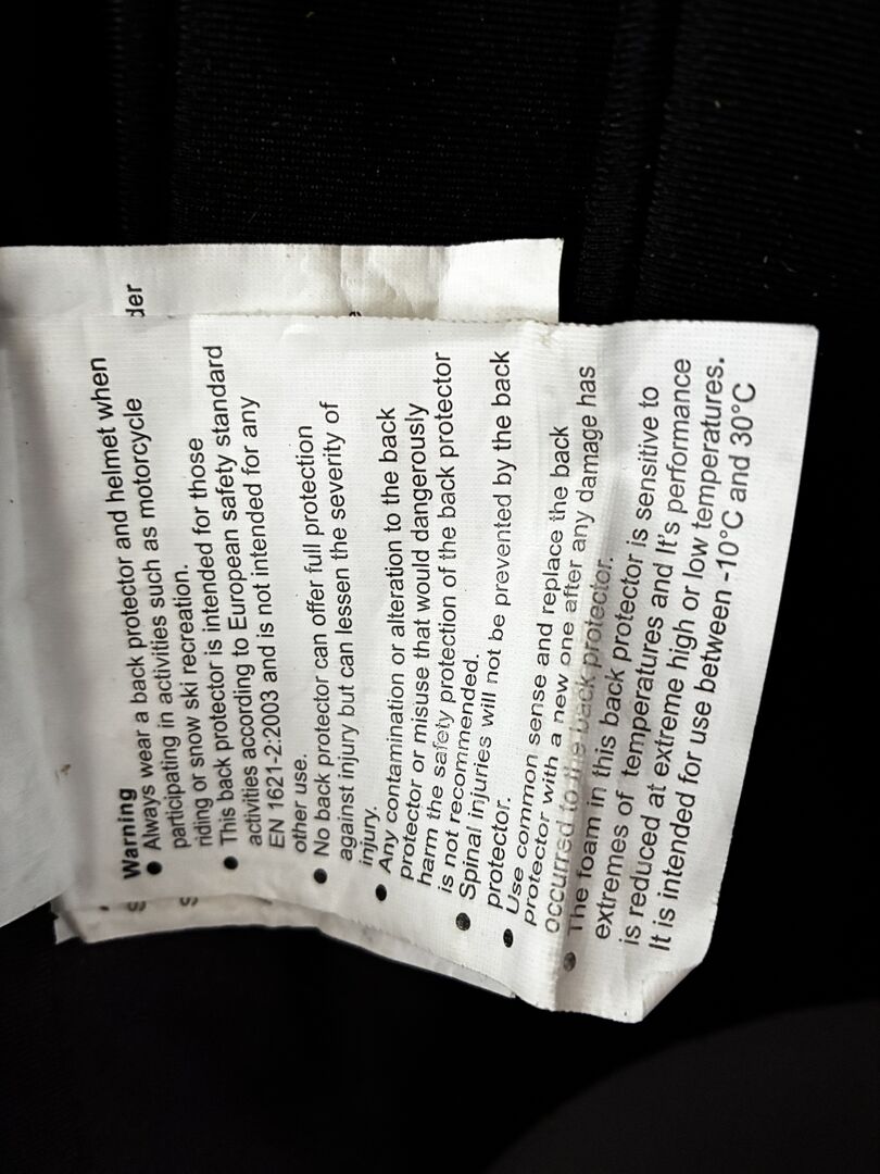 Back protector Swing size adult (A-M) - Back protector (vest) with zipper and Velcro fastener on the sides for optimal adjustment. Everything intact - used