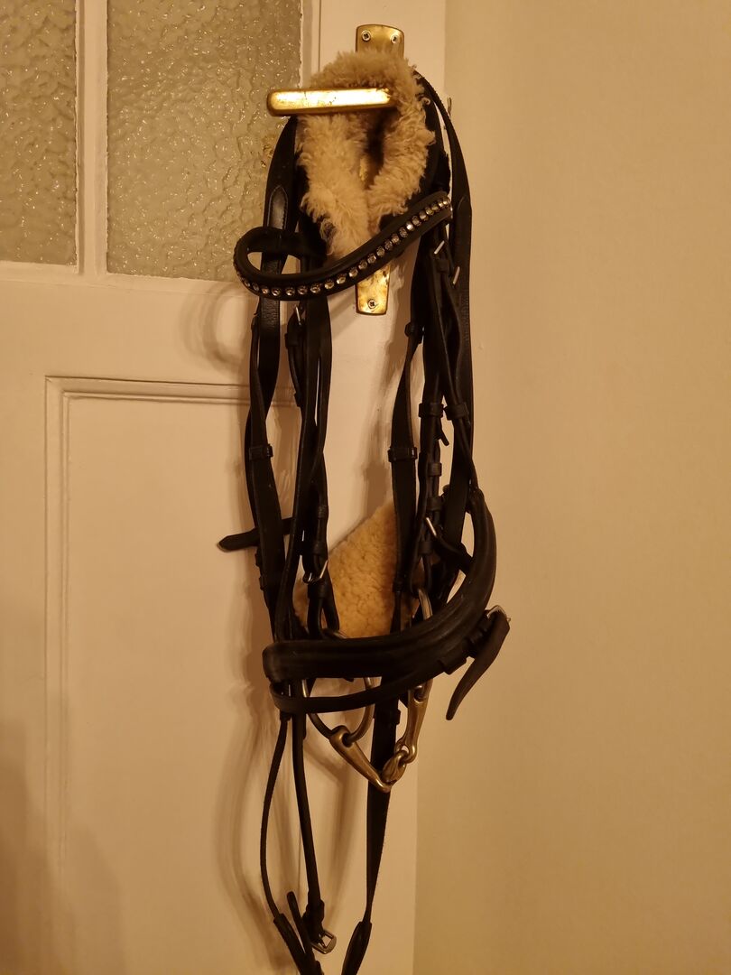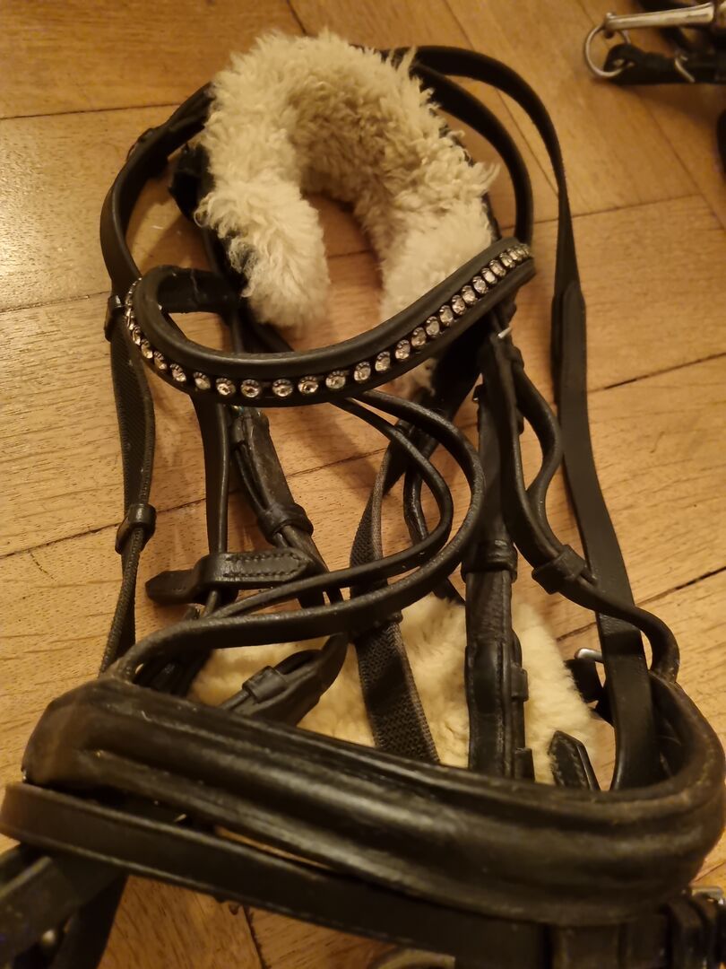 BR Pony snaffle with glitter browband and Sprenger KK Ultra bit - Selling this great complete bridle set for ponies. Included are - Snaffle, Swedish combined with glitter browband - 2 lambskin pads - Sprenger KK Ultra double broken 115mm. NP together >250€