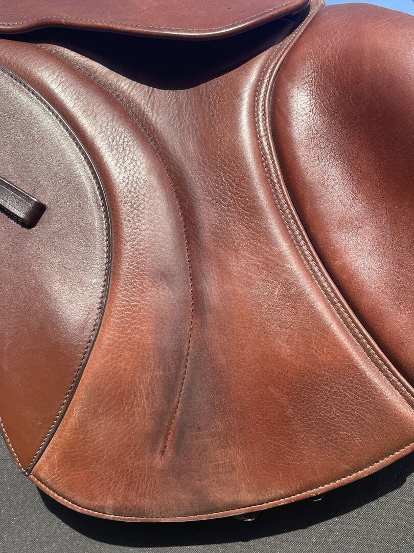 The saddle has a seat area of 17" and is in good condition as it has always been well looked after. However, a few signs of wear are unavoidable (see pictures).