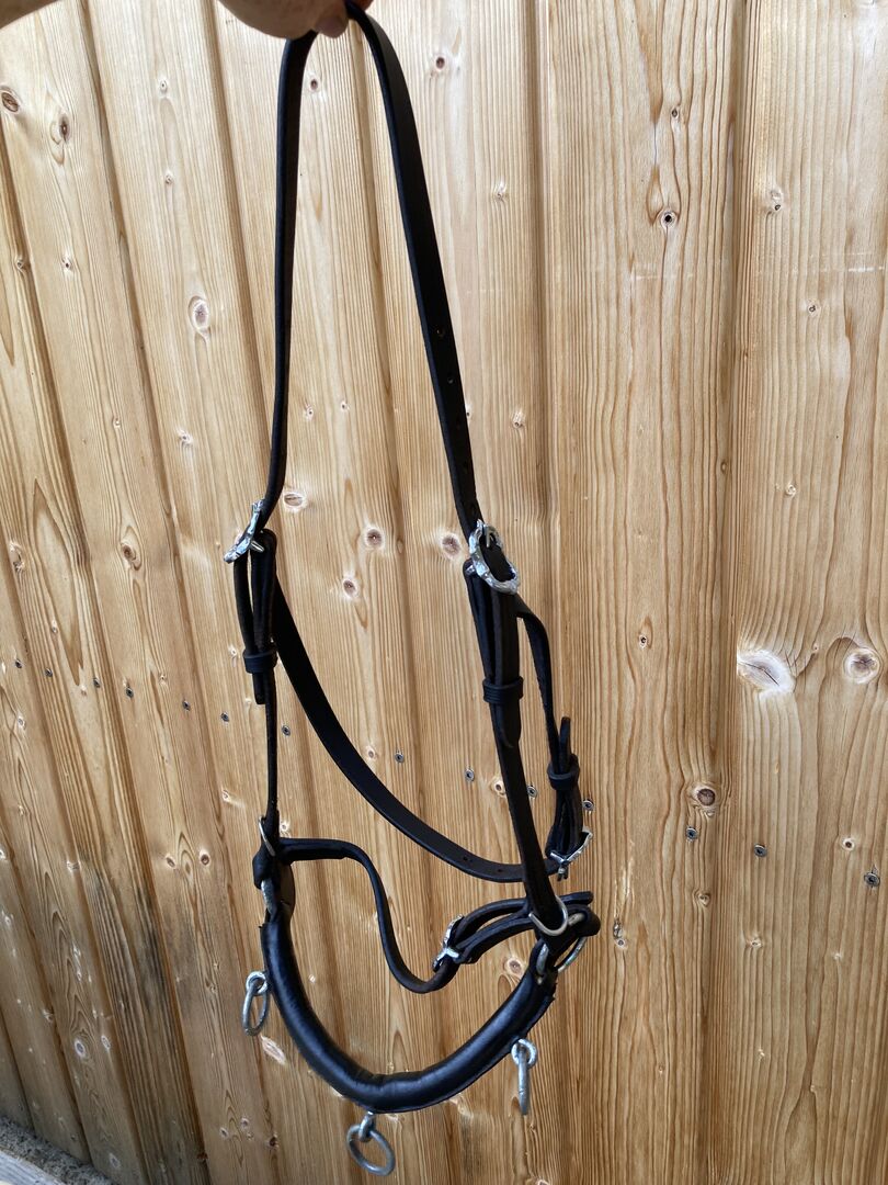Cavecon from Marjoman in Portuguese style - Baroque cavecon with flexible link chain in the noseband and ganache strap. Made of vegetable-tanned cowhide with brass cortesia buckles. Rarely used, in mint condition. Price: 100,- Pick up in 77880 Sasbach. Shipping possible, costs borne by buyer.