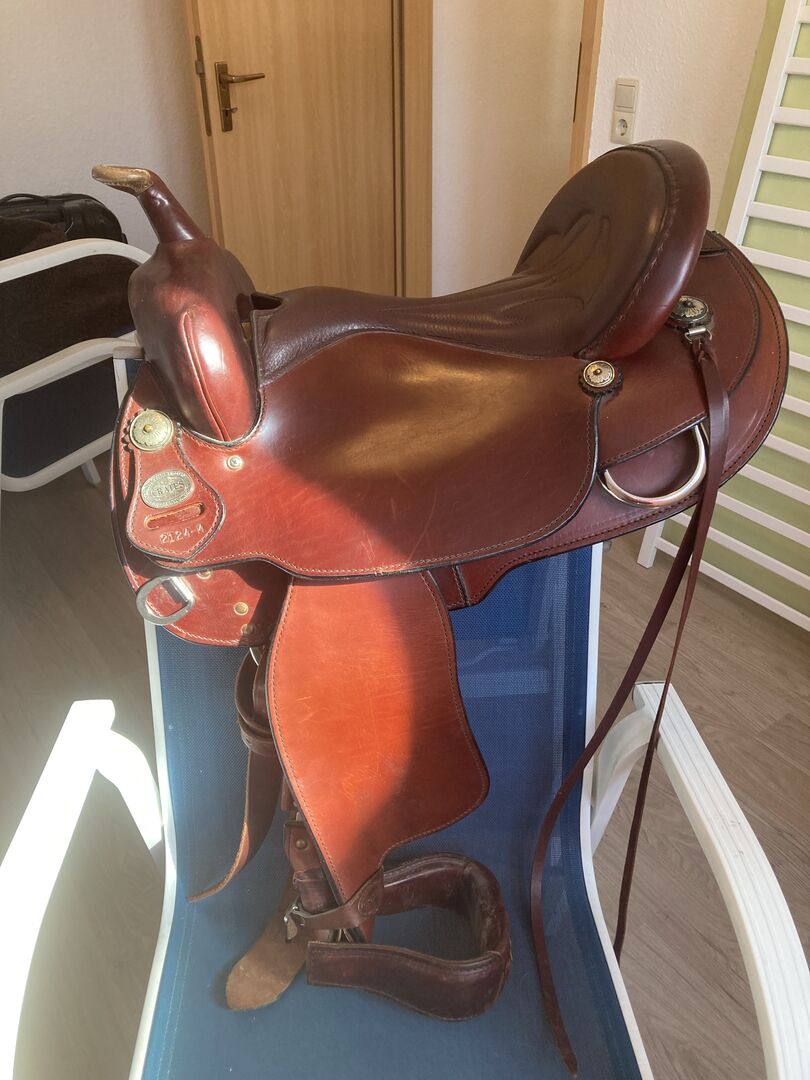 Zu Verkauf steht ein sehr bequemer, kaum genutzter Crates Westernsattel. Der Sattel wurde im April 2020 gekauft. Wegen Reitsportaufgabe zu verkaufen. Der Sattel lag auf einem Paint Wallach mit wenig Schwung.