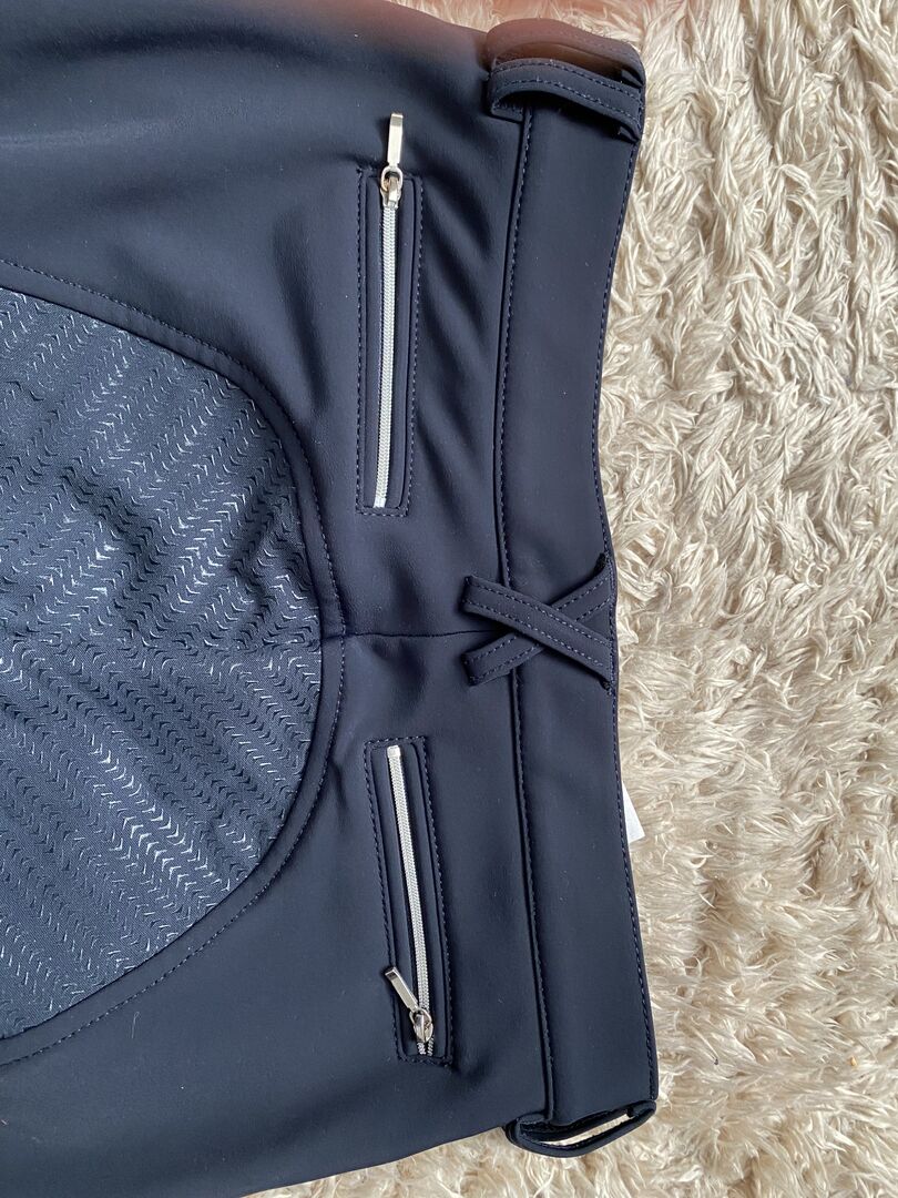 Dark blue Equiline winter breeches size 38 - Sell beautiful dark blue Equiline winter riding pants with full grip trim in size 38. However, the pants are slightly smaller - more like 36. The insides are lined with cozy fleece. The pants have an elastic leg cuff. On the right leg, a seam comes loose in a small place. Payment via PayPal possible. Private sale: The sale is made under exclusion of any liability for material defects and without return.