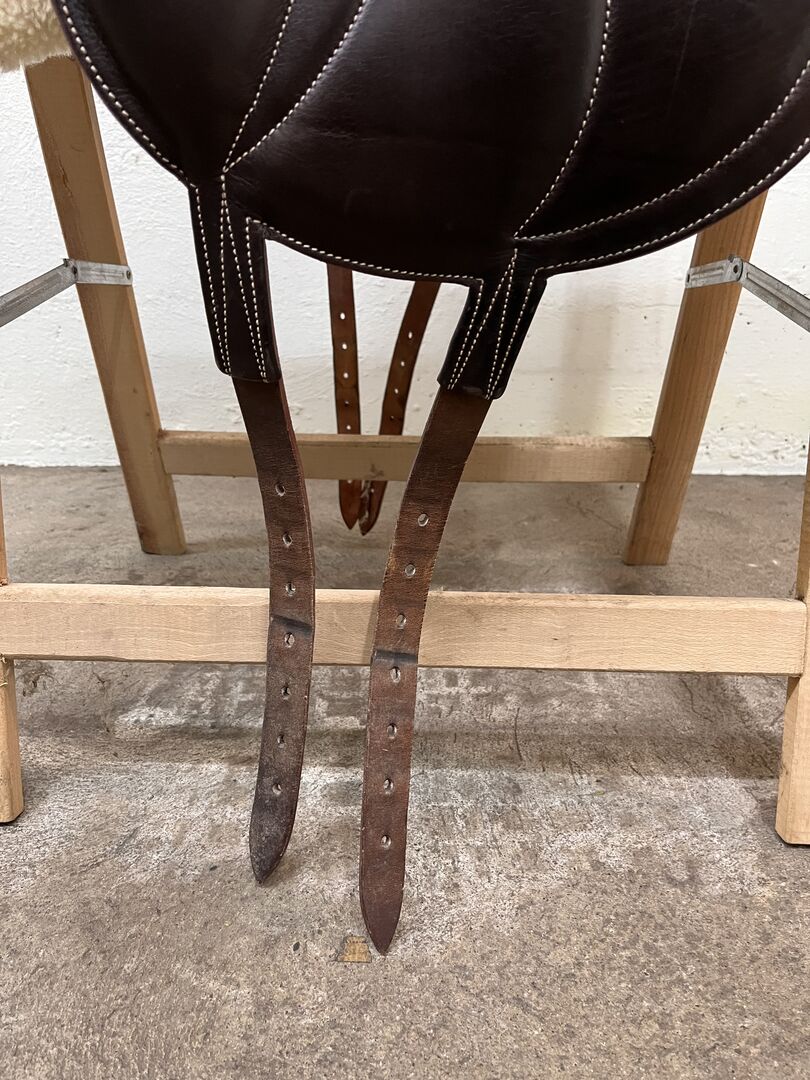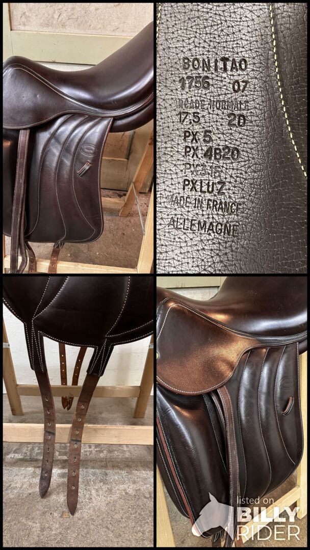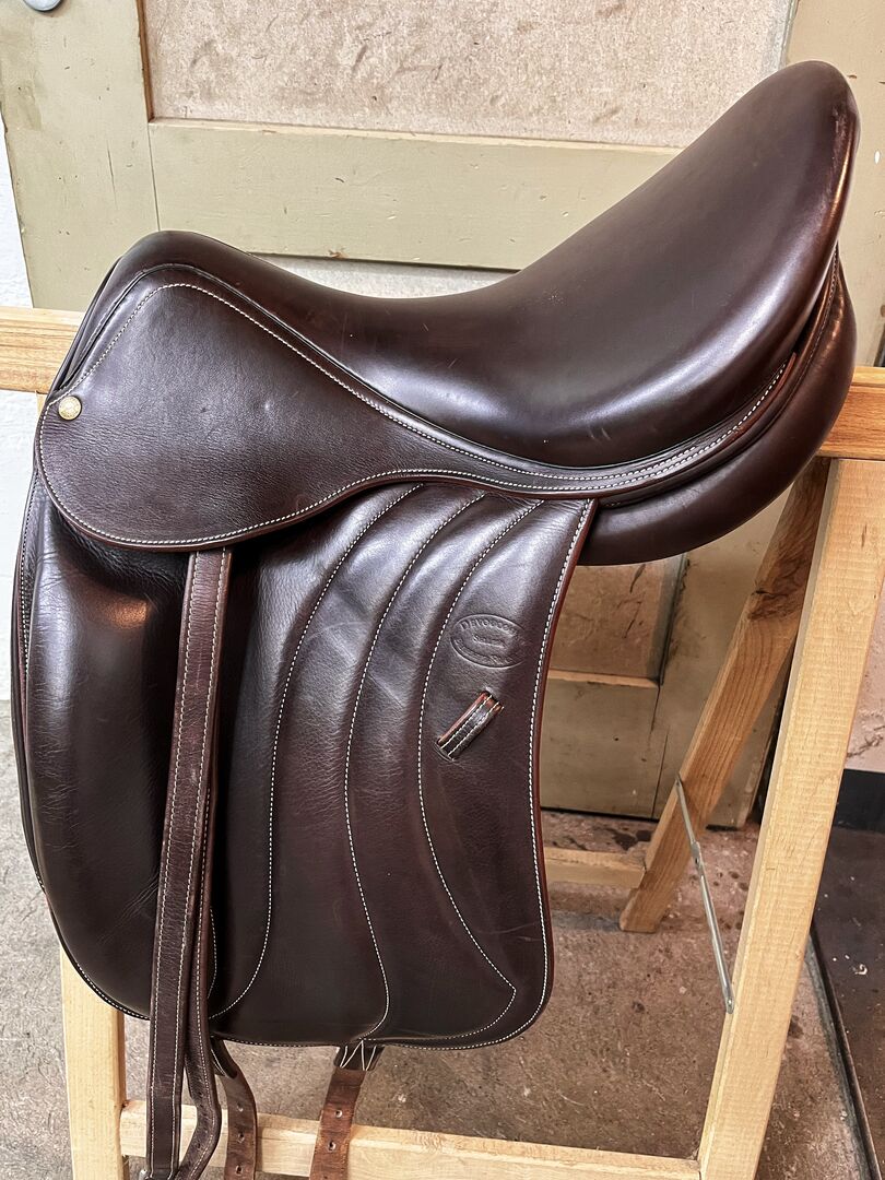 It was made for a rather narrow thoroughbred with some swing in the back. 17,5" 2D seat and especially for ladies pelvis very comfortable. The nicely stitched monoblate puts the rider very close to the horse and allows dressage riding with minimal aids from the seat. Original Devoucoux girth (50 cm NP 290.- Euro) included in the price.