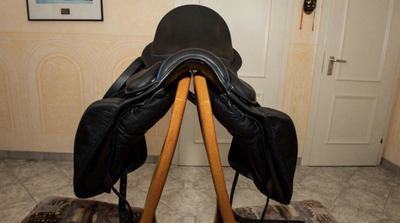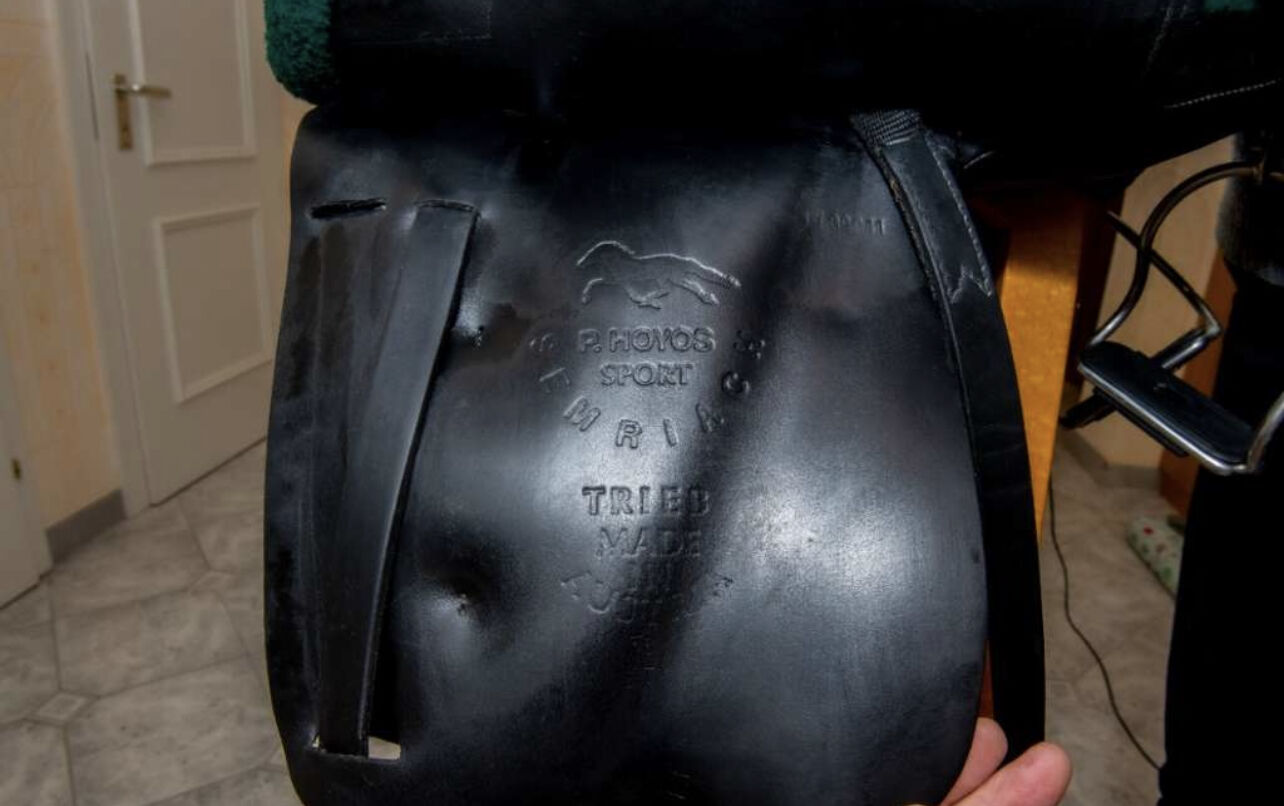 Drive saddle - Saddle for Icelandic horses Black with blue stitching and 9 pcs.Swarovski stones in white-red-blue. Seat 17.5" chamber W incl, Hilbar stirrups with Icelandic horse colors. It is a custom made saddle P.Hoyos Sport-Semriach-TRIEB and can be adapted to any horse. Has always been checked 2x per year by Mr. Trieb