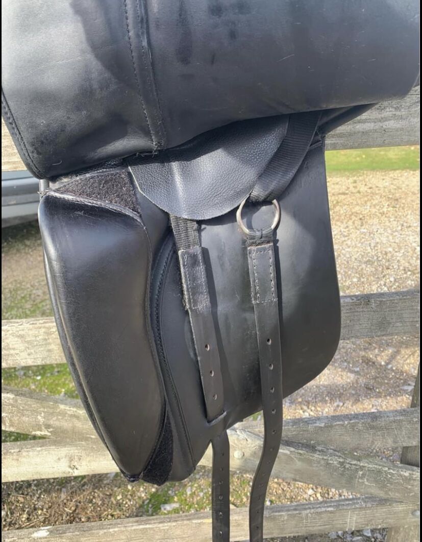 Well used but no significant scuffs or marks. Adjustable knee rolls. Selling with 26” girth.