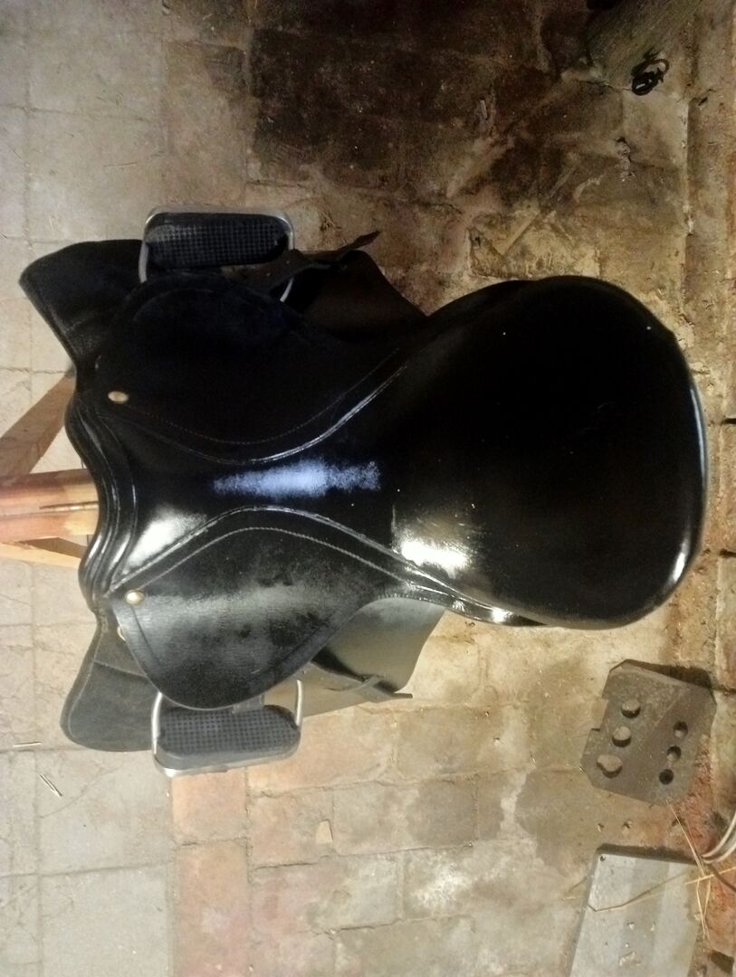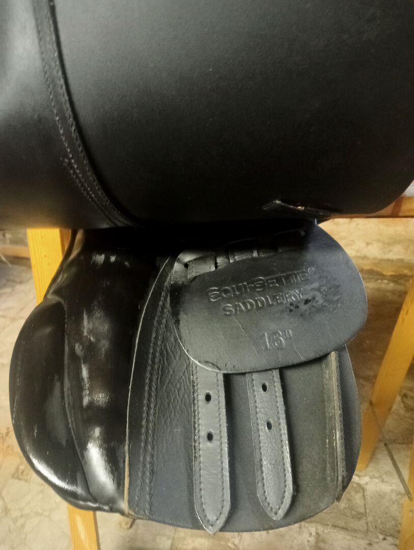 Equi Bette VS Saddle black, 16 inch (incl. stirrups and stirrup leathers) - This is a 16 inch VS saddle, with deep seat, it is black with gloden fittings. The saddle is like new and was only transitionally on my pony. It is well suited for horses or ponies, with a high rip.