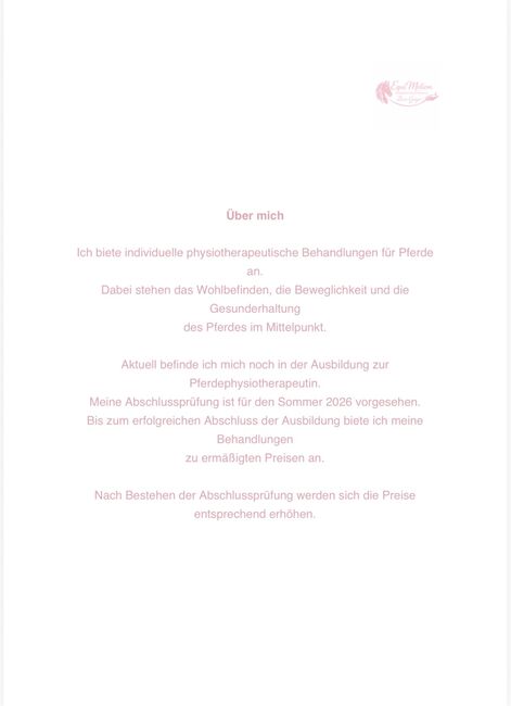 I am currently training to become an equine physiotherapist (graduating in summer 2026). Until successful completion, I offer my treatments at reduced prices.