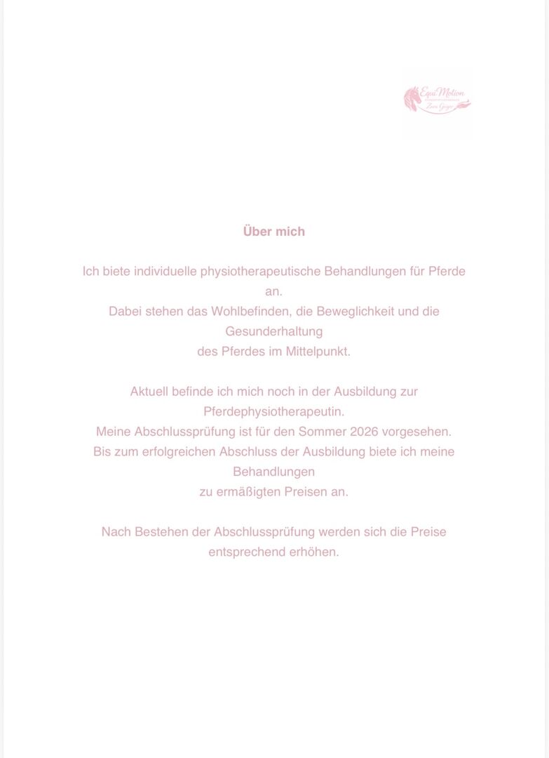 Please make an appointment: Instagram: equimotion.pferdephysio WhatsApp: 0151 22152006
