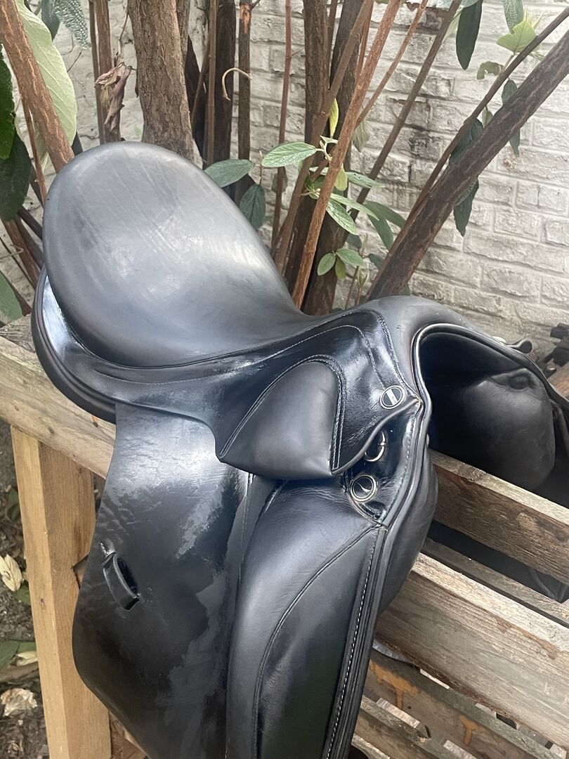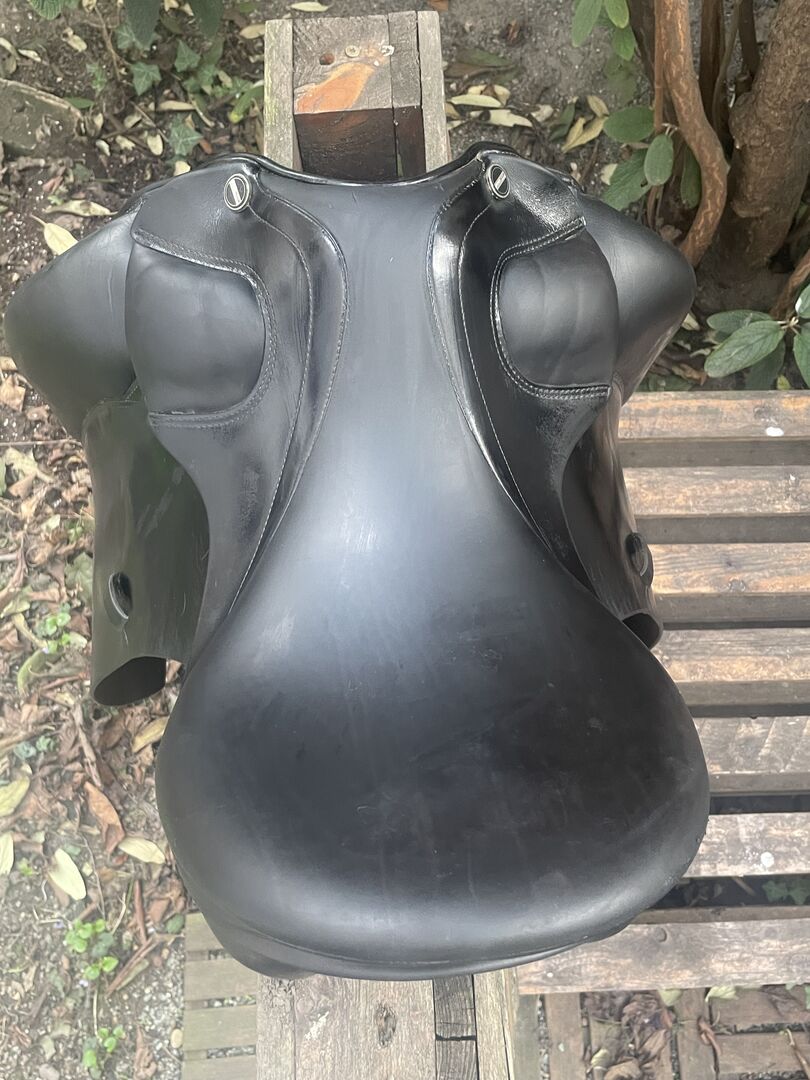 Erreplus Dressage 17.5 inch KW 33 SL dressage saddle - Erreplus Dressage 17 inch, chamber width 33 SL (Shoulderless) Regularly maintained and checked by a saddler Chamber cold adjustable Noble look due to mixture of smooth leather and suede Saddle is generally in very good condition, soft and even padding Unfortunately has a small blemish on the seat where the stable cat has scratched it, therefore cheap to sell Price is negotiable and includes saddle pad Shipping possible!
