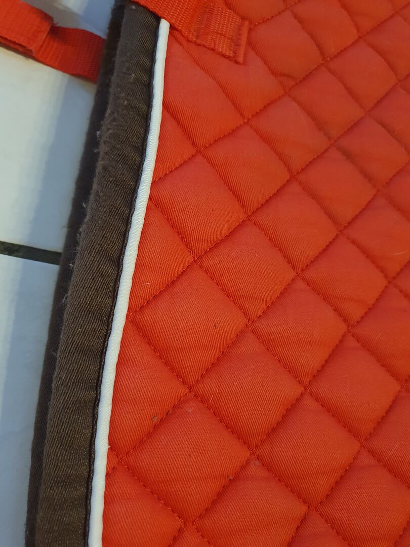 Eskadron dressage saddle pad hibiscus - I offer here a used dressage saddle pad from Eskadron in the color hibiscus. It has signs of use and discoloration in the area of the girth, but is not broken.