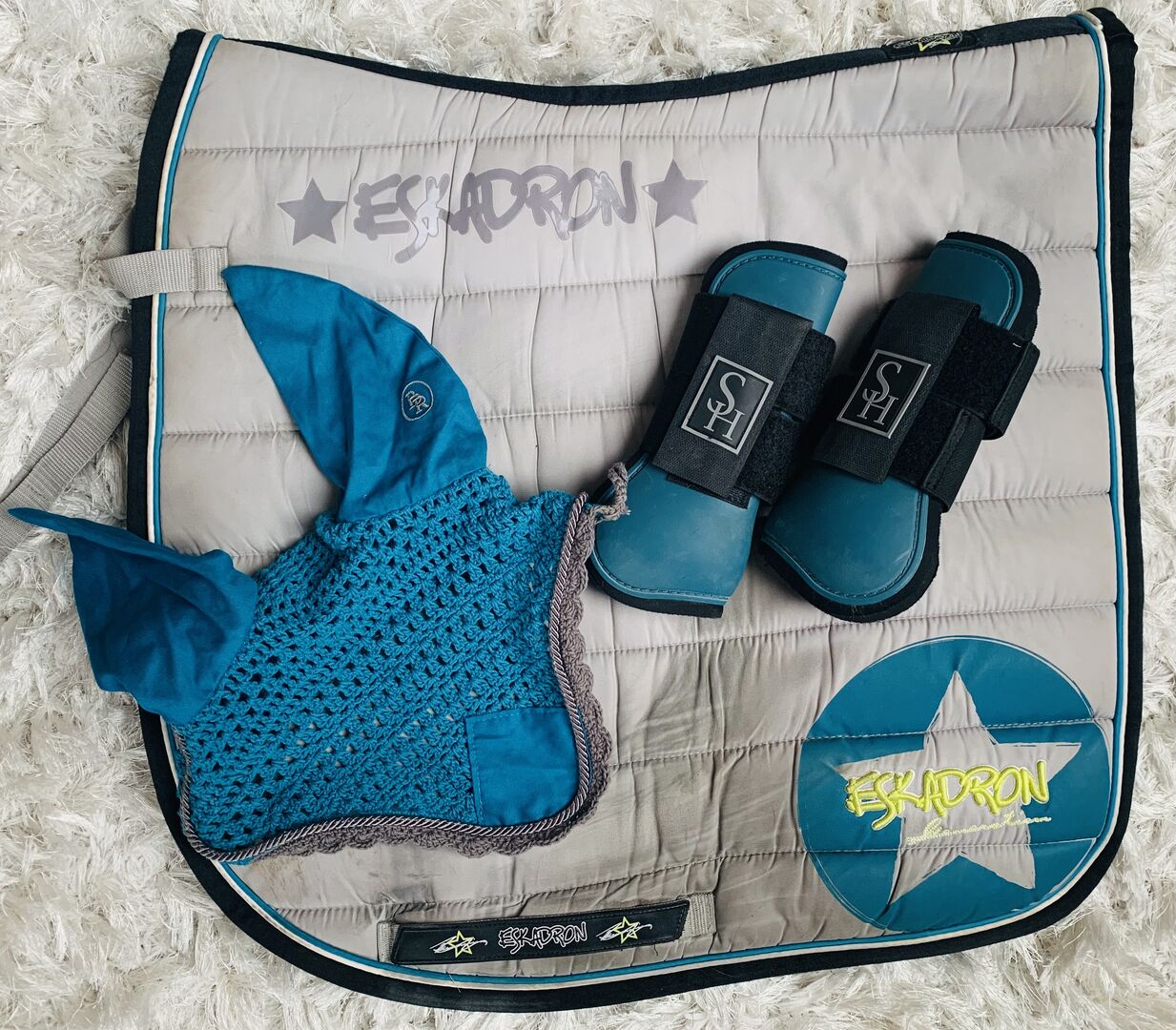 Eskadron saddle pad in set light gray petrol - Beautiful set in gray and petrol. Attention. The saddle pad is not washed. Since I did not get around to it yet :)