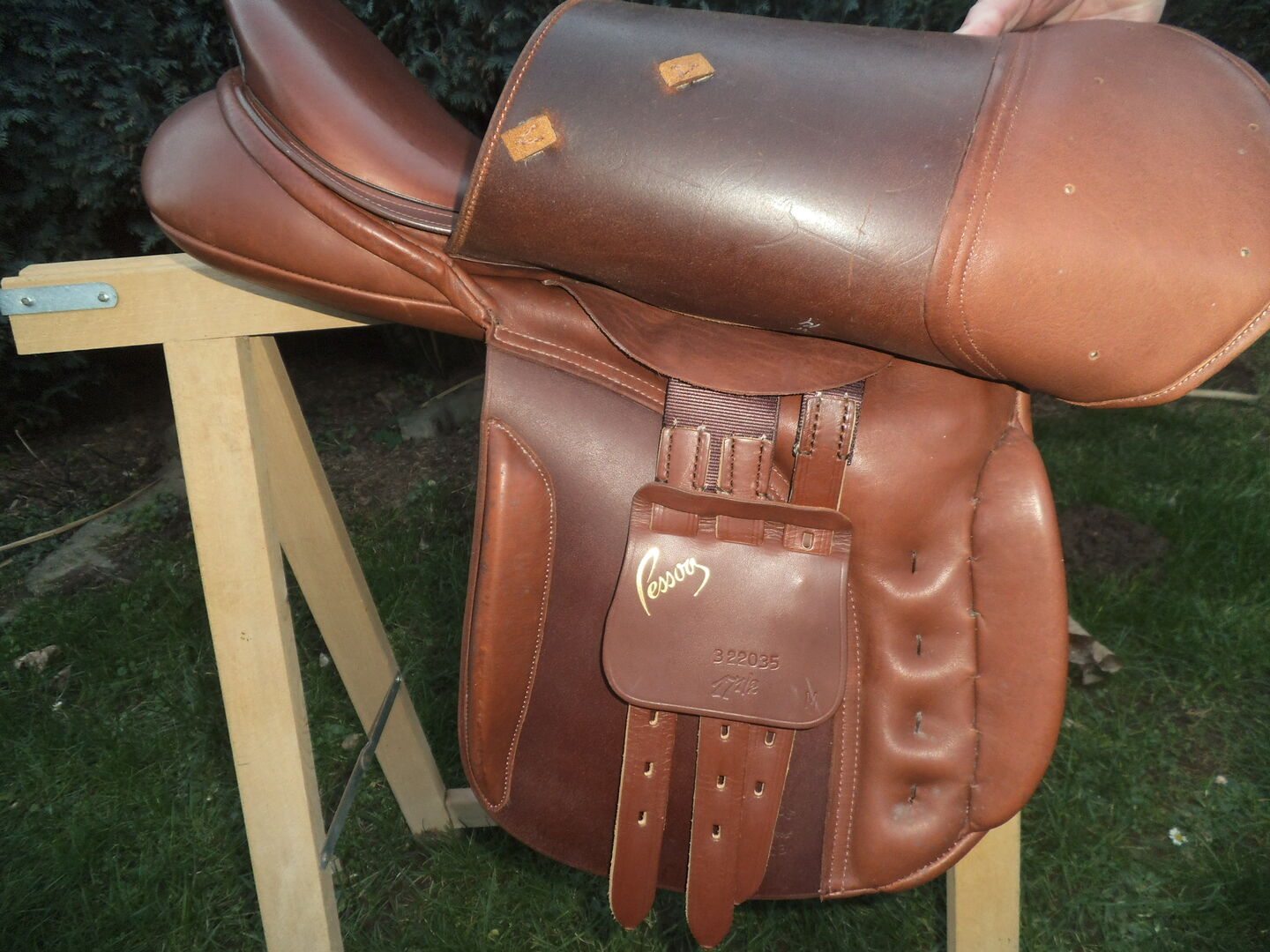 Eventing saddle VSD Pessoa brown size 17.5 - Hello, I am offering a great Pessoa VSD eventing saddle in brown size 17.5. It is a very comfortable saddle with a medium chamber width (approx. 17 cm inside measured at the height of the maria girth strap). Serial no. is 322035. The saddle has an elongated flap at the front and back. Unfortunately, it does not fit our tall horse. We have already had several Pessoa saddles and have always been very satisfied. They lie great, great leather and sit well. NEW and unused. The buyer is responsible for shipping or collection. Shipping will be charged to the best of our knowledge and belief. This is a private sale, therefore I assume no guarantee, warranty and do not take back the goods.