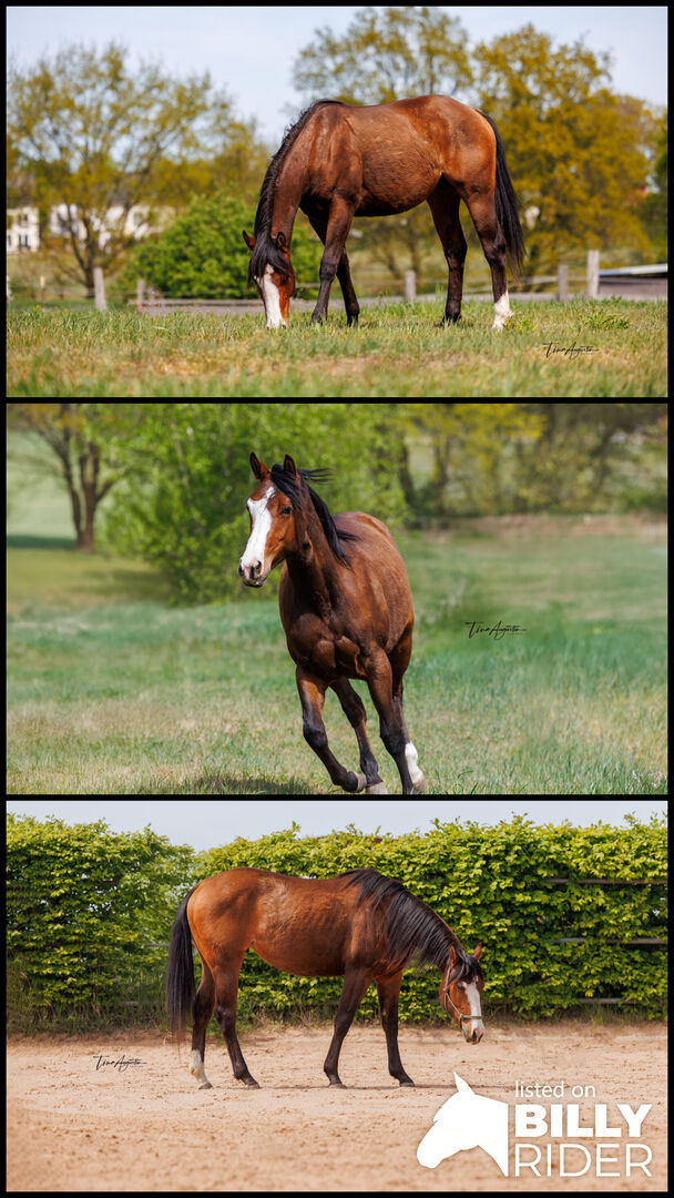 Expressive 2 year old QH mare - Location: 14532 Stahnsdorf Lenas Billy Jean, an expressive 2 year old QH mare This wonderful mare promises a lot of fun! She is a good mover and enjoys walking. Billy Jean is alert, very people-oriented and curious. Her estimated final height is 155 cm, born at 6.23. In summer, she enjoys her time in a large meadow with other playmates and older mares. The mare is regularly handled and taken along as a hand horse. She is, of course, fully vaccinated and is regularly presented to the farrier. Billy Jean is sure to become a great ranch riding horse, she has all the prerequisites for this from her sire CL Scotch Bar Shine and her movements speak for themselves. Due to her good papers, the mare is also interesting for breeding. Billy Jean can also stay for further breeding. Dam: UG Lena Holly Chex UG Lena Holly Chex is a daughter of the multiple AQHA Champion CL Silent Badger, who has AQHA points in Working Cowhorse, Reining, Western Riding, Ranch Riding and Performance Halter. On her dam's side, names such as the legendary King Fritz and Boogies Flashy Jac can still be found on her papers. She is an athletic mare with super movements and lots of stop. Sire: DQHA elite stallion CL Scotch Bar Shine Q15 runner-up in the DQHA Futurity Ranch Riding Open DQHA North Futurity Winner Ranch Riding 2016 Q16 Int. Reserve Champion Junior Ranch Riding Q16 3rd place Futurity Ranch Riding Q17 Licensing winner, Futurity Champion Ranch Riding and 4x 1st place Junior Ranch Riding. Nord Futurity 2017 Futurity Champion Ranch Riding and Reining Futurity Already qualified 3X in Ranch Riding for the AQHA World Show. AQHA and American Paint Horse Association Registered ! AQHA Register of Merit - Ranch Riding for CL Scotch Bar Shine On October 8, 2017, the AQHA awarded the CL stallion CL Scotch Bar Shine the RoM (Register of Merit) in the Ranch Riding class (minimum 10 AQHA Performance Points).