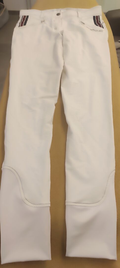 Felix Bühler competition trousers white 40 - Offer 1x used white breeches with full grip in size 40, have no stains or similar and look like new.