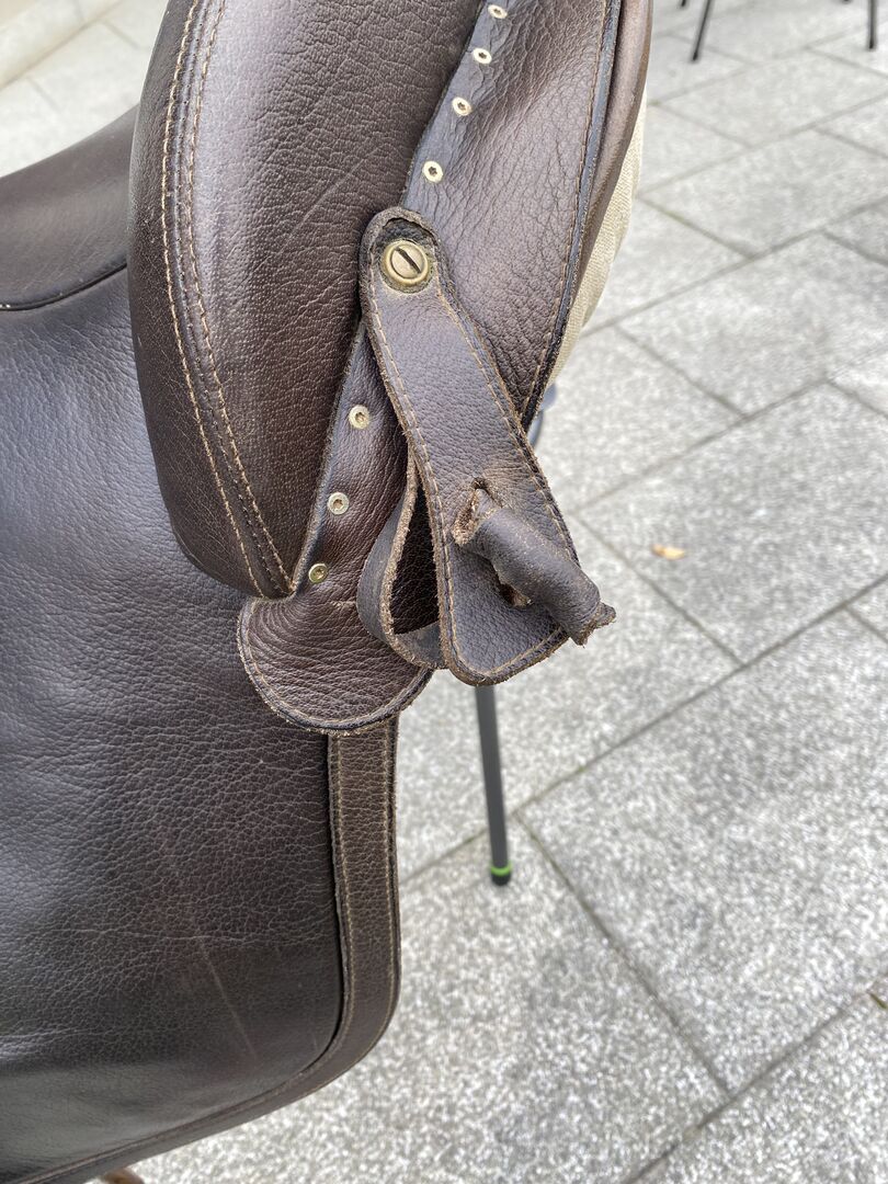 The saddle was on a PRE and was re-padded about a year ago. It has hardly been on the horse's back in the last year and the padding is therefore still in top condition. Gallery front and back, stirrup suspension on the saddle. Adjustable Velcro straps. Signs of wear see pictures.