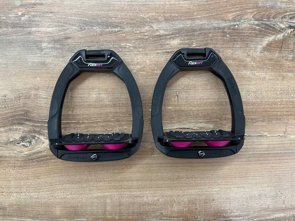Flex On safety stirrup Safe On - Made from organic polyamide. Easy to clean (cleaning with water, no need to dry). Highest resistance due to steel core. Elastomers in medium hardness, suitable for all disciplines.