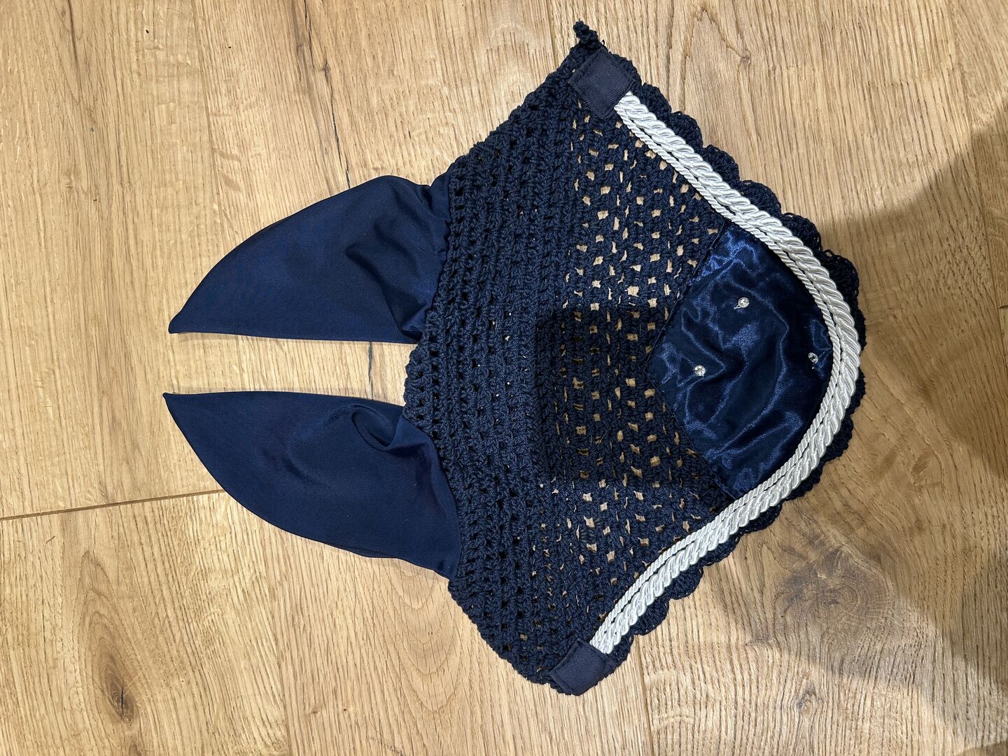 Ich verkaufe meine Fliegenohren in der Farbe blau mit weißer Kordel.