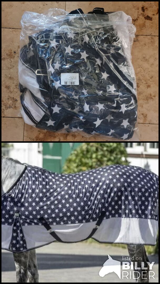 Fly rug Stars with cross surcingles Paddock rug USG 165cm - Fly rug Stars by USG, new with label. Size 165cm cross surcingles, no neck part.