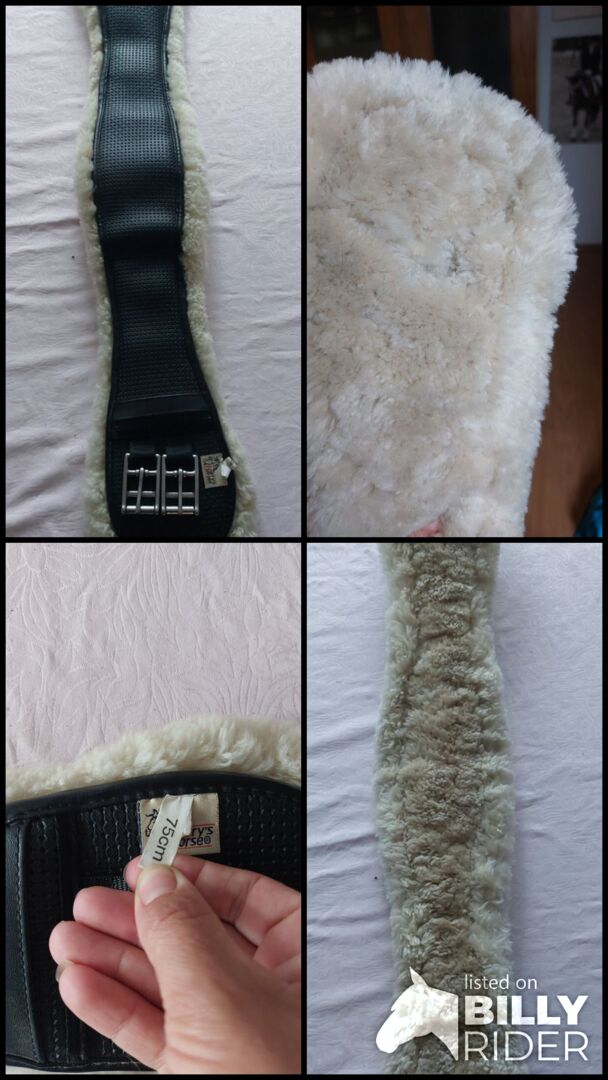 Harrys Horse lambskin girth short girth anatomical 75cm - I am selling a well-preserved anatomically shaped short girth with velcro removable lambskin. No elastic! A piece of fur is missing in one place (last picture), but this does not affect the functionality.