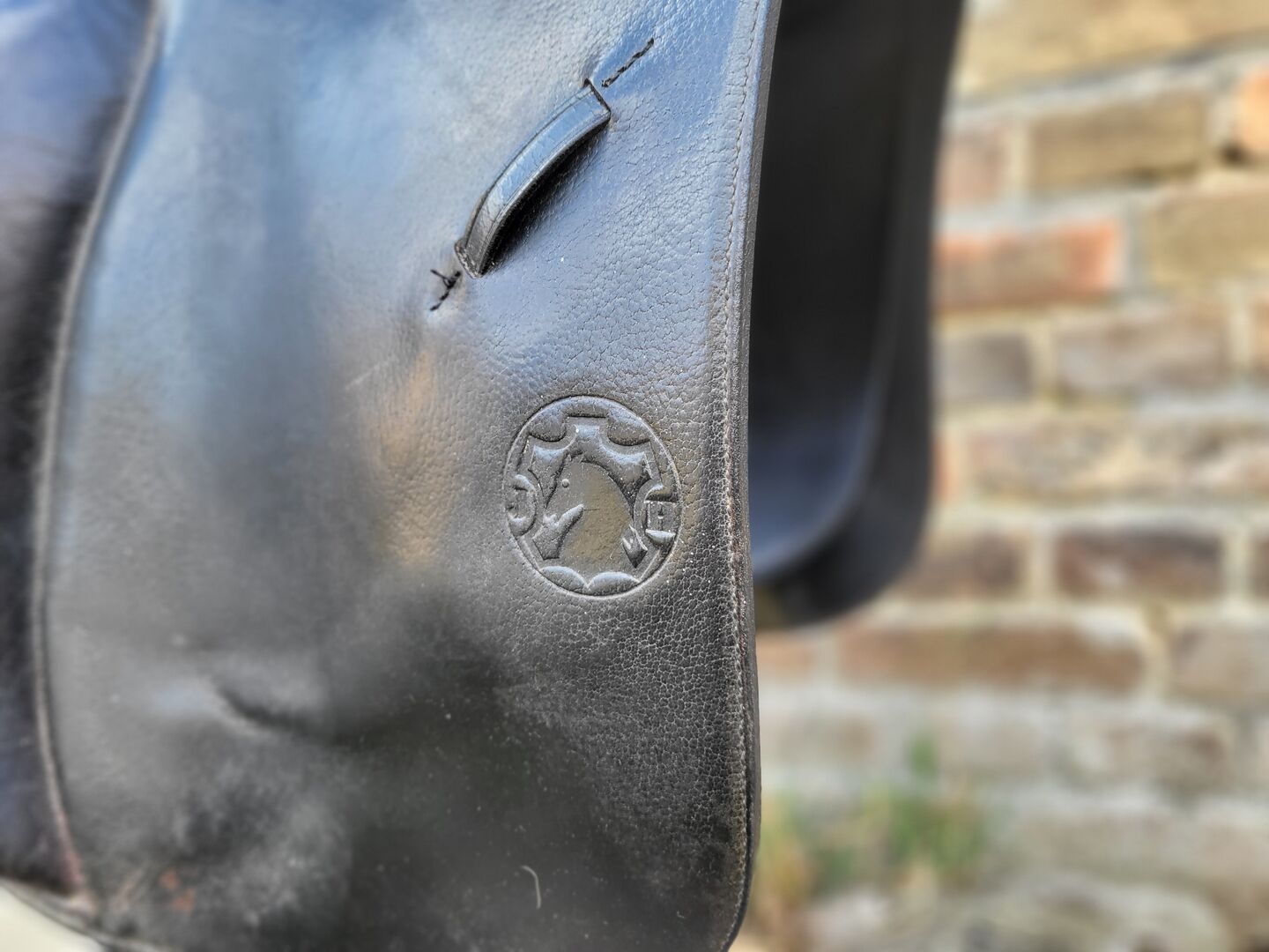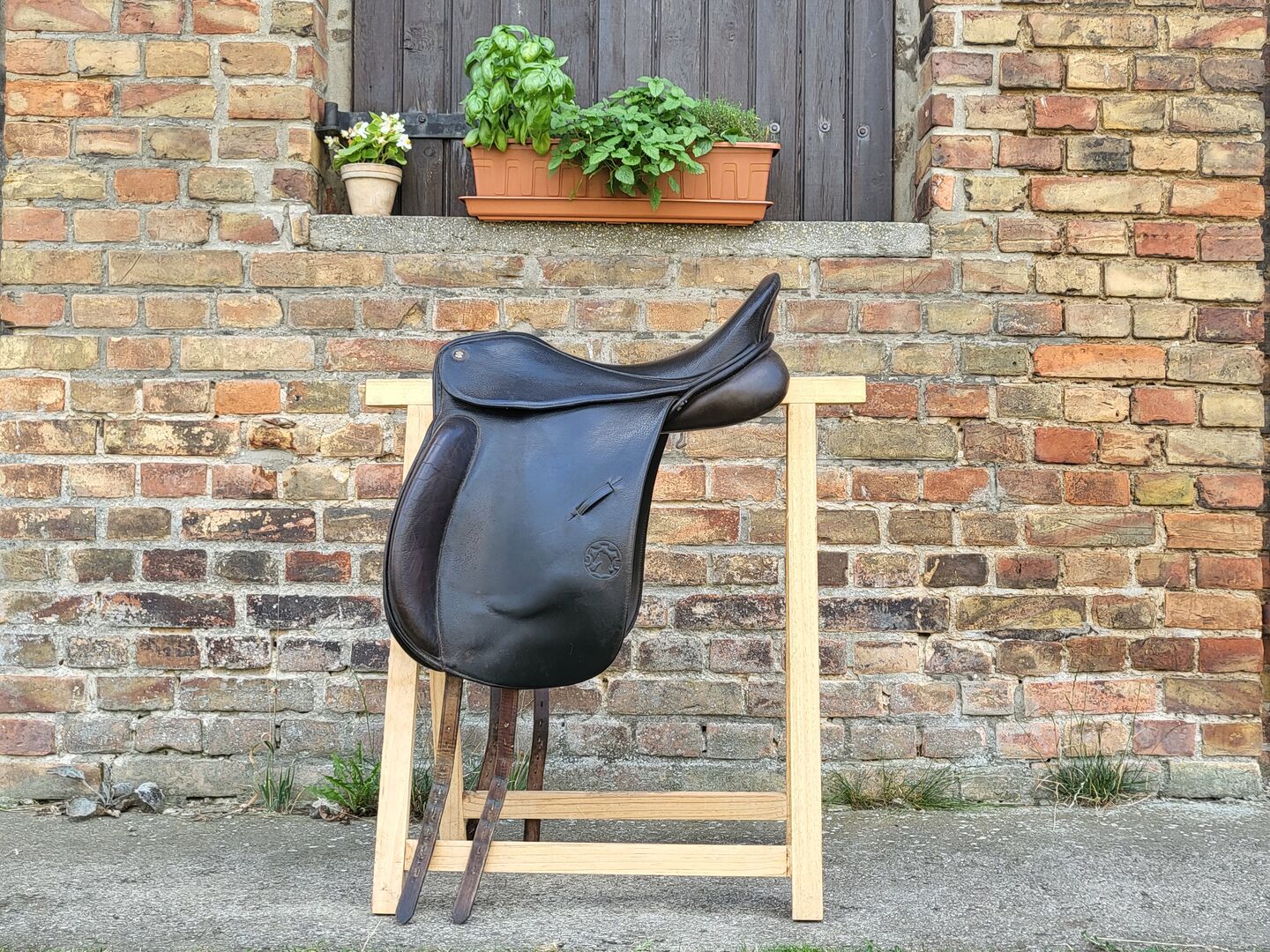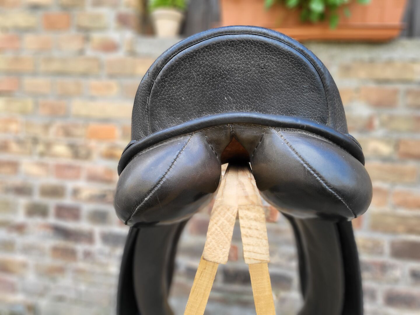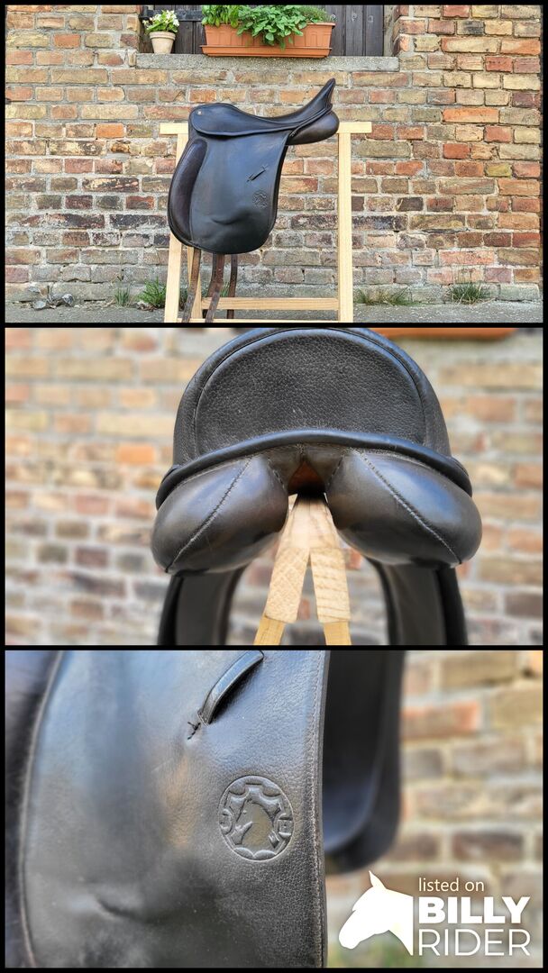 Henning Dressage Saddle, 17,5" traces of use as visible in the pictures. The gullet bar can be adjusted. The saddle will fit on a long, straight horse.