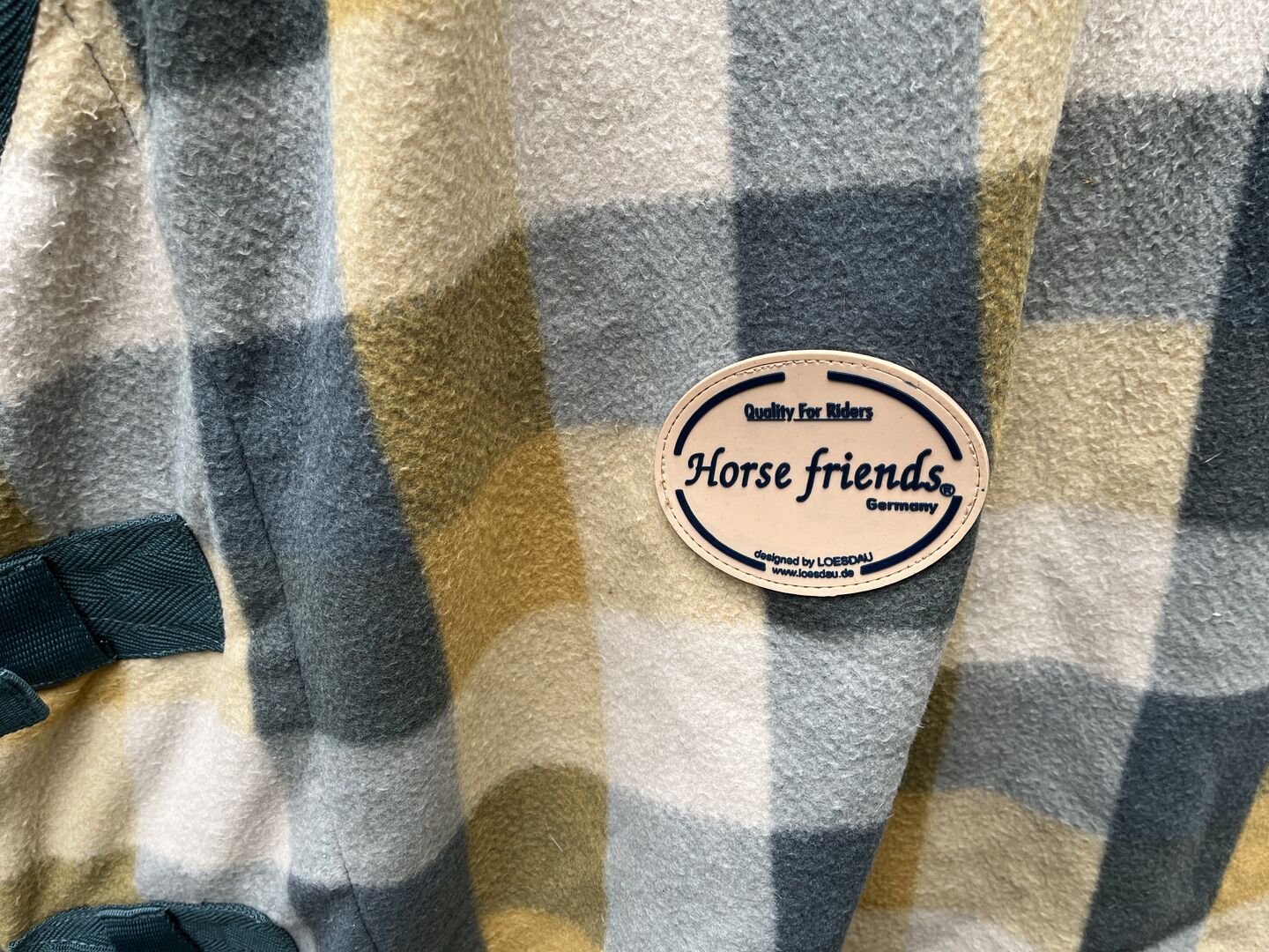 Horse Friends by Loesdau sweat rug 135cm - Sehr schöne bunt karierte Abschwitzdecke aus kuscheligem Anti-Pilling-Fleece. Transports the weight of the garment from the body of the horse to the body of the horse. With doppeltem Brustverschluss (2 Metallschnallen), Fleecepolsterung am Widerrist. 100 % Polyester.