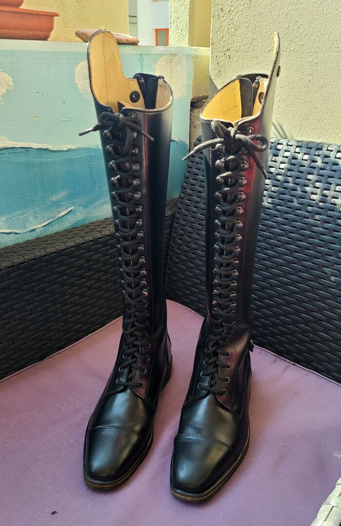 Königs riding boots size 6 corresponds to 39 new - Beautiful new Königs riding boots. They were only worn once by my daughter to try them on as she got a second pair. They have not been broken in yet. Size 6 corresponds to 39. They are super chic and just too good to be left in the wardrobe. Great leather, with lacing at the front if the calf is still growing. Königs riding boots last forever and are great to ride in! I've had them myself for ages. NP: 620 Euro