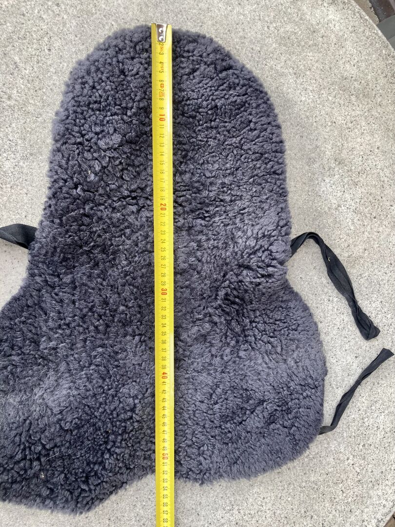 Lambskin saddle seat protector - Used saddle seat protector made of lambskin in anthracite. Can be attached to the saddle with elastic straps. Provides a pleasant soft seat and keeps you nice and warm when riding in winter. Measures approx. 46cm x 43cm. Slight signs of use visible and if necessary, cleaning in the washing machine is possible.