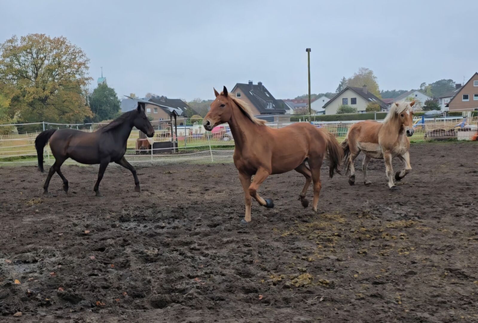 Meine drei Großpferde sind im alter von 11 und 19 Jahren und zwischen 155 bis 168 groß. Sind auch alle für jeden quatsch zu haben. Solltest du dich für eine Reitbeteiligung wünschen solltest du in allen drei Gangarten sicher Reiten können haben alle sehr viel Go und ab und an ist auch kleiner freunden Buckler drinne. Alle meine Pferde werden NICHT Englisch geritten sondern in richtung Western und machen auch mal gerne kleine Sprünge untern Sattel. Alle meine Pferde sind sehr fein an den Hilfen und reagieren sofort auf die kleinsten Gewichtverlagerung sollen auch so bleiben.
