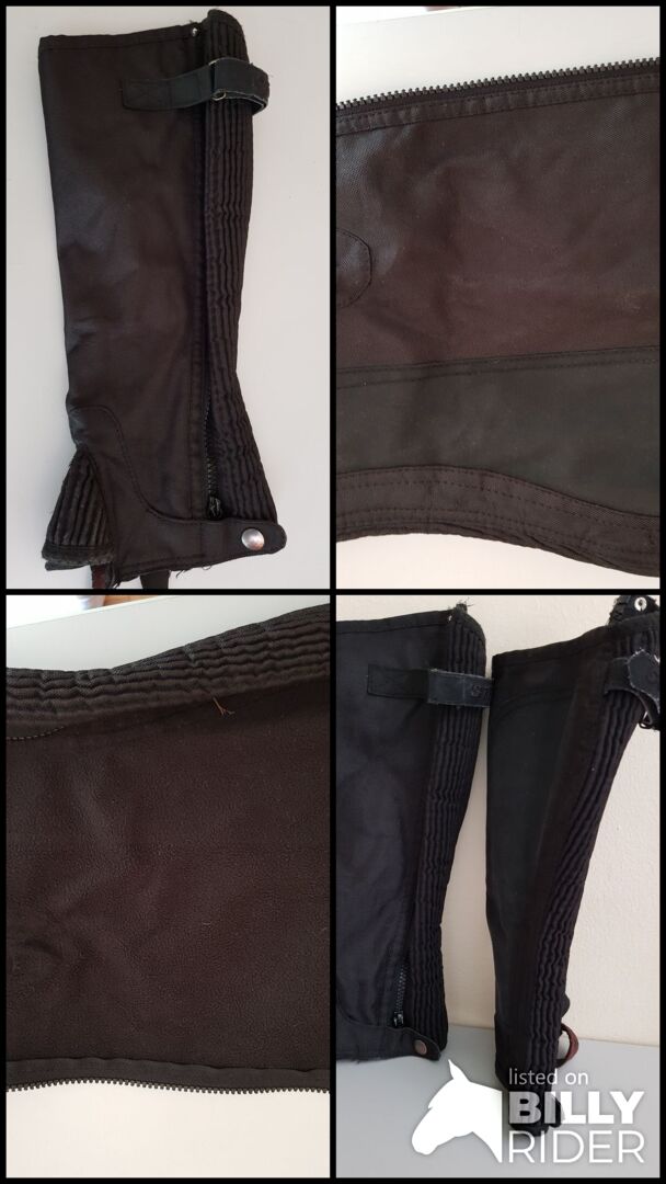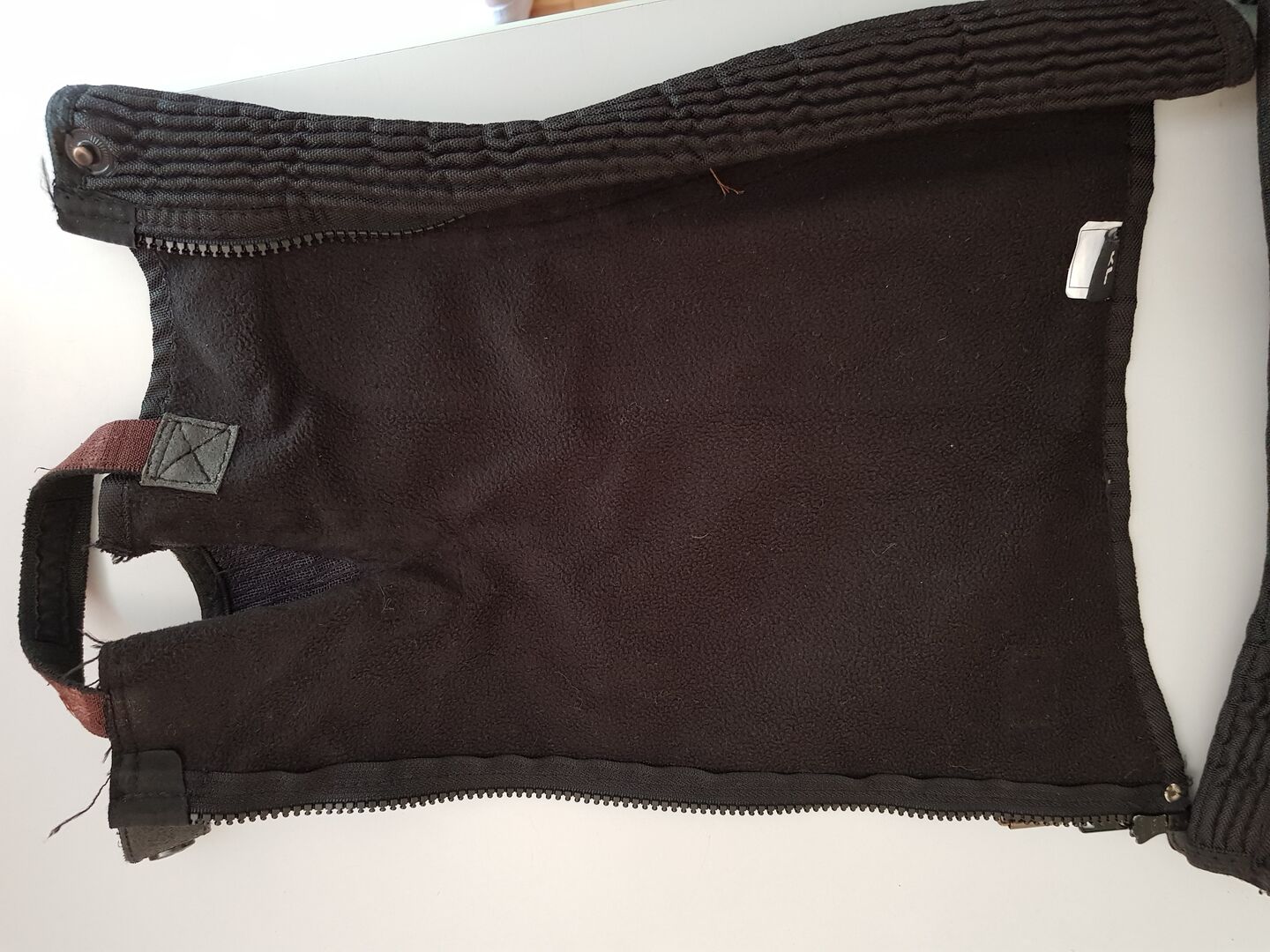 Mini chaps from Steeds - Sell well preserved mini chaps from Steeds. These elasticated, super comfortable mini chaps from Steeds feature a woven in elasticated calf and instep. The upper velcro strap and the lower press stud also ensure a tight fit of the chaps. The chaps are washable. Children's size KL Height: 34 cm Width: 32 cm