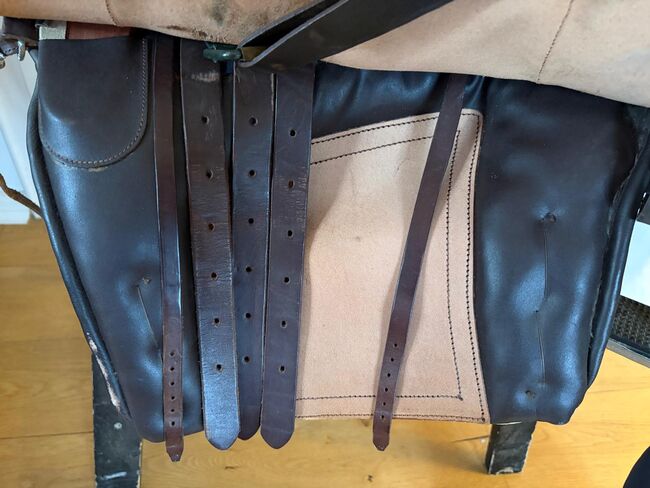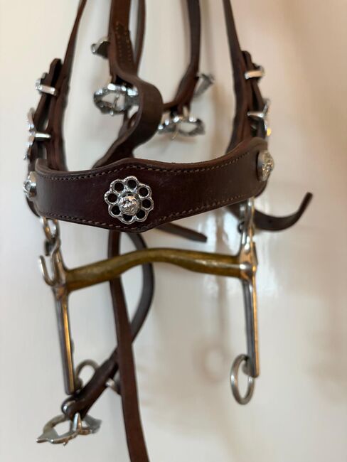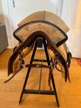 Incl. stirrups, breastplate, shoeing straps, xiarel, girth and matching bridle with two pairs of reins, bar and chin chain
