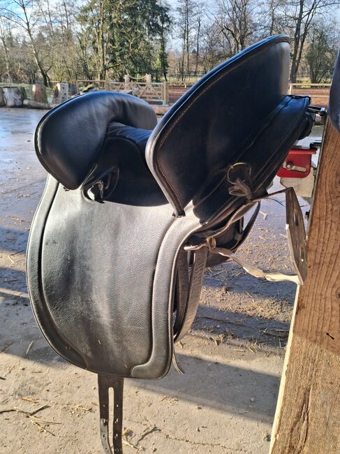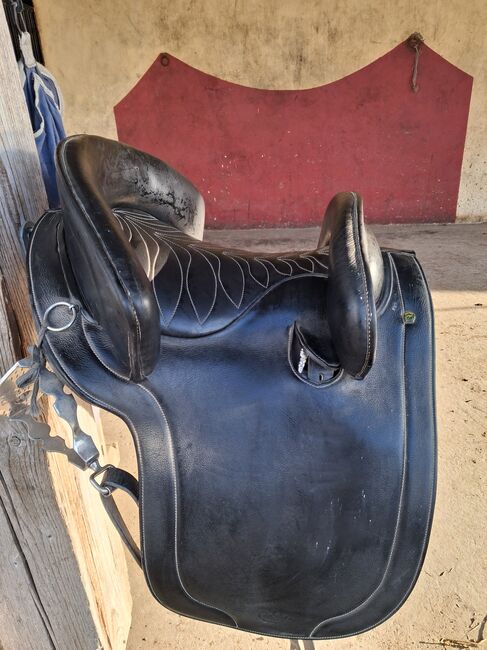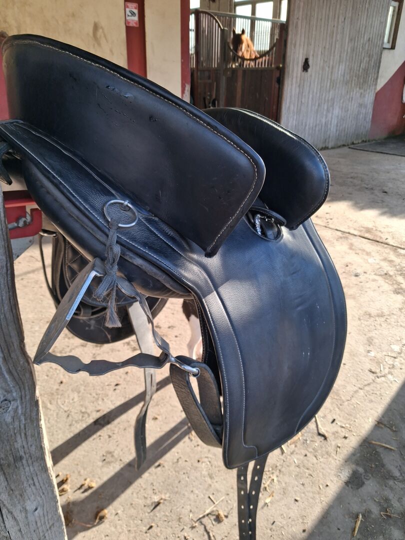 POTRERA WORK SADDLE BY MARJOMAN - ich verkaufe meinen wenig gebrauchten ARBEITSSATTEL der sich bestens für WORKING EQUITATION oder Showreiten eignet . Durch das Thermoverformbare Kopfeisen passt er sich optimal an den Körperbau Ihres Pferdes an. Sehr schön verarbeitet aus schwarzem Leder mit aufwendiger Stickerei. Der Sattel kostet neu rund 1500 Euro . Ich habe ihn wenig gebraucht und biete ihn für 790 EURO zuzüglich Versandkosten an