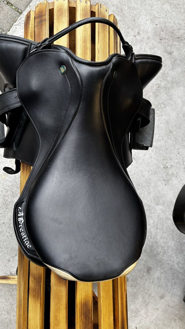 For sale a jumping saddle from Prestige, model Professional Elastic in black. KW 33 seat size 18". Is 4 years old but in great condition. Selling it because of new purchase. I bought it used in March 2024, was little on the horse.