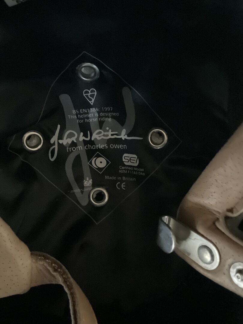 Riding cap Charles Owen - Riding cap by Charles Owen, dark blue, ladies, size 59, / 7 1/4, with rhinestones/ bow, lettering, worn once, actually new