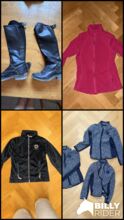 Riding gear, partly unused - Price etc. on request, riding boots often and gladly used, ankle boots and rubber riding boots used approx. 5 times, riding vests, winter breeches & polos unused. Approx. size 154-176 for children