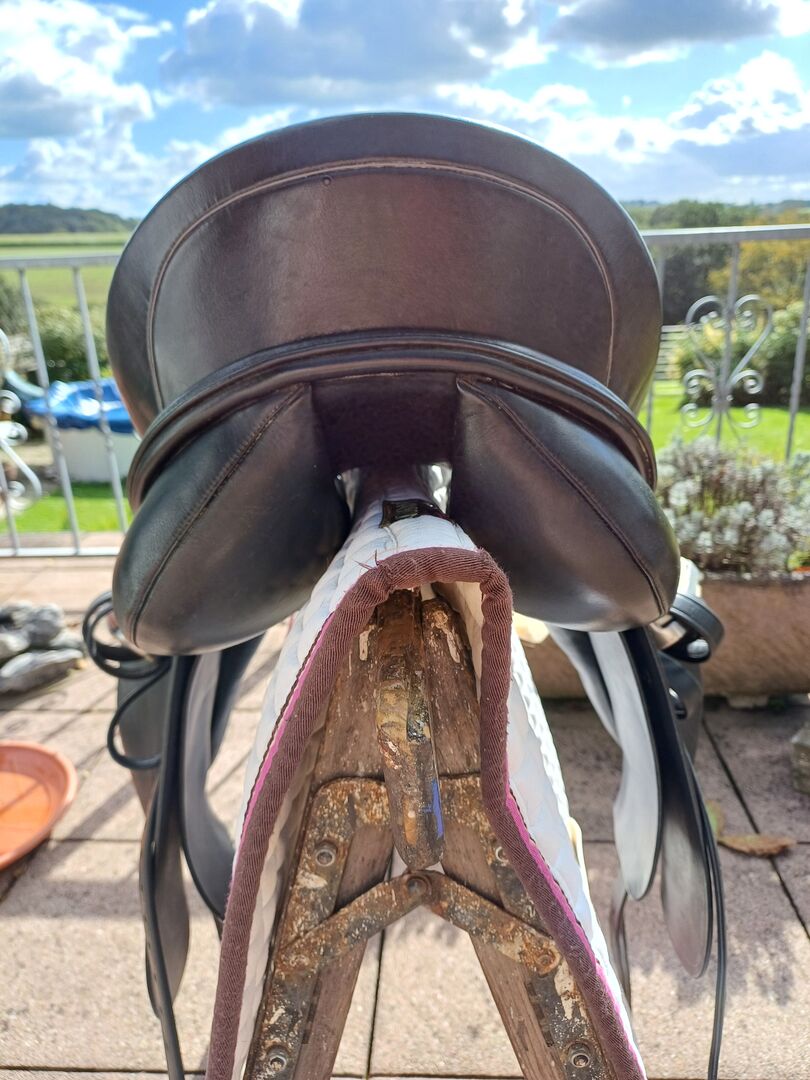 I am selling the saddle as my Tinker has unfortunately passed away. My young warmblood also wears a Dynamic E and it fits him perfectly and could be adjusted again and again during the growth phase. The saddle also comes with the Passier stirrup leathers incl. stirrups and the saddle flap see picture.