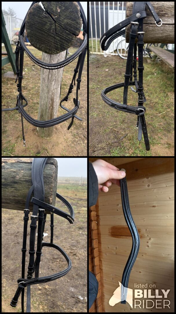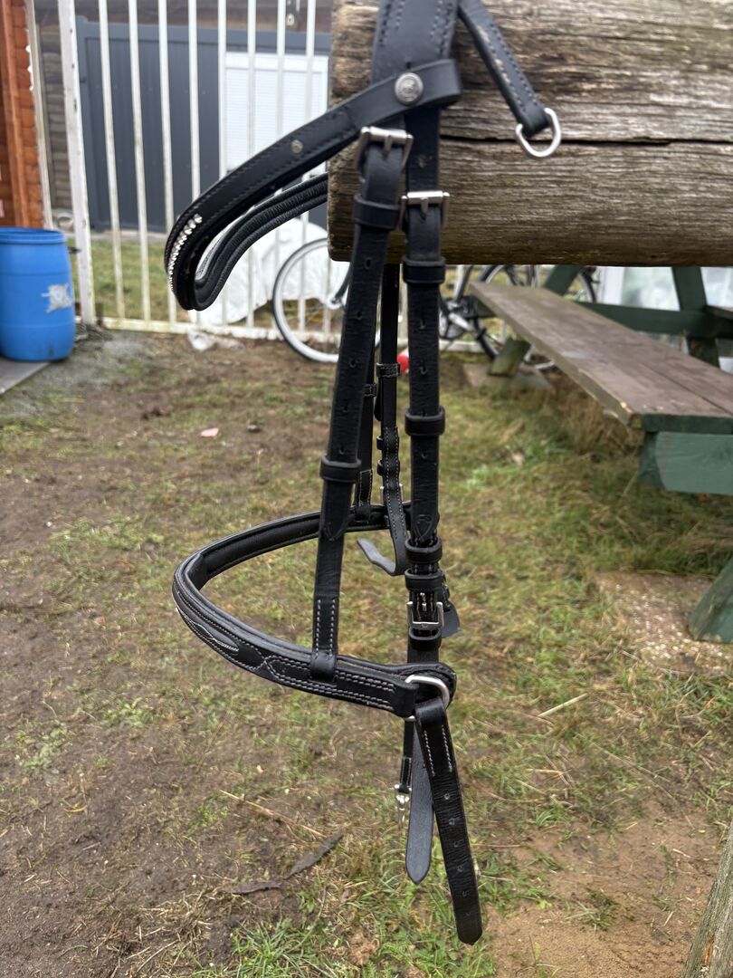 Snaffle decorative stitching leather black cob - Little used snaffle with 2 browbands.