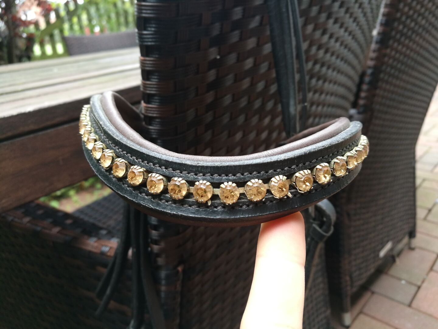 Snaffle WB Black brown - This is a Swedish Loesdau brand noseband with incredibly soft leather. Condition is top, the browband is decorated with amber stones. Size Warmblood.