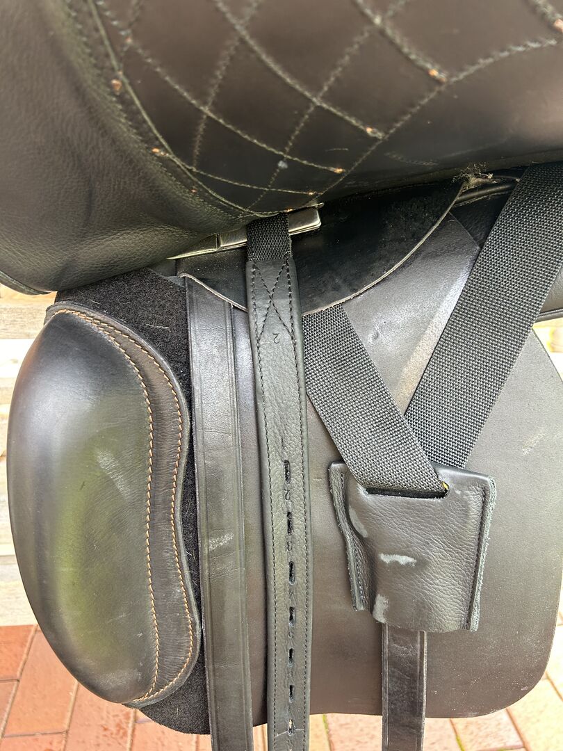 Sommer Adventure 17.5 saddle / leisure saddle / dressage saddle - I am selling my beautiful saddle from Sommer. The saddle is now approx. 1 1/2 years old and has not been used much in all that time. I bought it second-hand half a year ago. Even after several hours in the saddle, it is still comfortable. Chamber width on delivery: 32 Flexible saddle tree (adjustable) Seat size: 17.5 Velcro blocks
