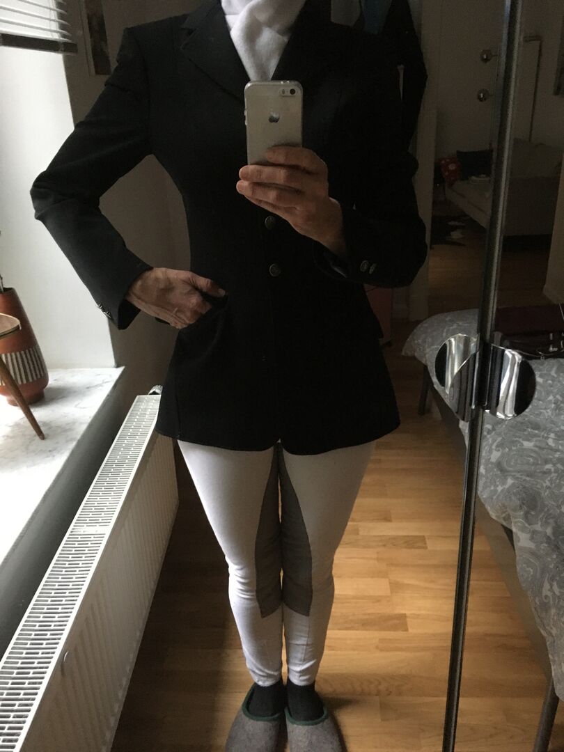 Tournament riding gear - I hereby offer for sale my Tunier riding gear. The jacket is gr 72 (36 long) and the pants are gr 76 (38 long). I have worn the clothes about 5 times. The sacco is polyester and machine washable. It is very comfortable and has a nice gray lining. The white pants, Piquer Lugano, has a gray full seat. It is made of polyamide microfiber, quick drying and very comfortable. Also comes with 2 plastrons and a silver plated riding pin. Gladly I give my practical rain overpants in addition, so that on the Tunier the white Hosem is protected and remains clean up to examination! This is a private sale, no return, no guarantee.