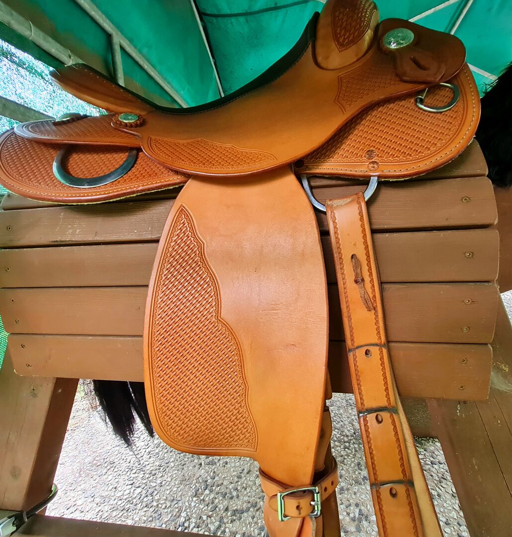 Unfortunately my young horse has changed so the saddle no longer fits properly. Nice Lightweight stirrups included. 2nd pair of stirrups and protective cover also included. Saddle is stored in a dry storage area.