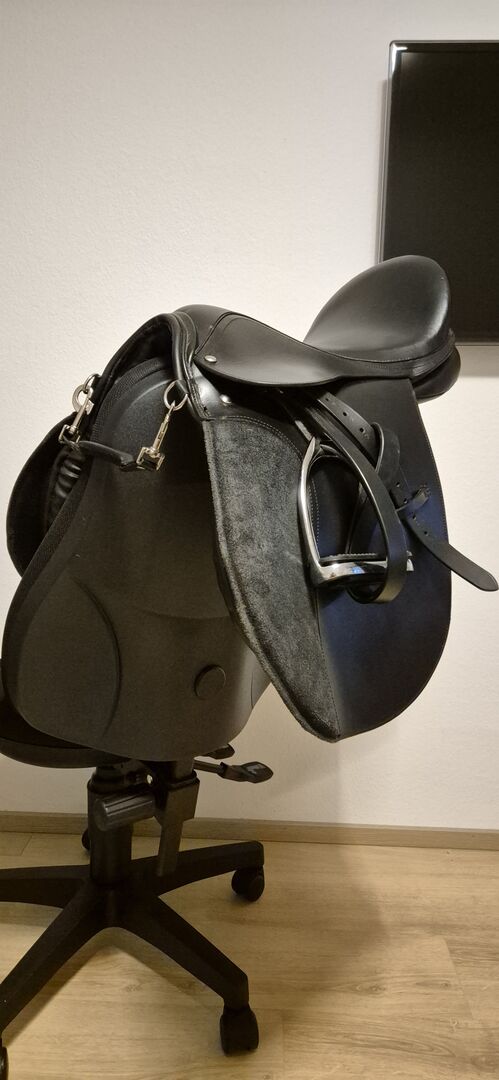 VS saddle 17.5 inch with accessories - I am selling my VS saddle as I want to switch to western. The saddle has been on my horse 4 times. The saddle comes with stirrup leathers 160 cm, stirrups 12 cm, long girth 140 cm with elastic strap, long girth 125 cm.