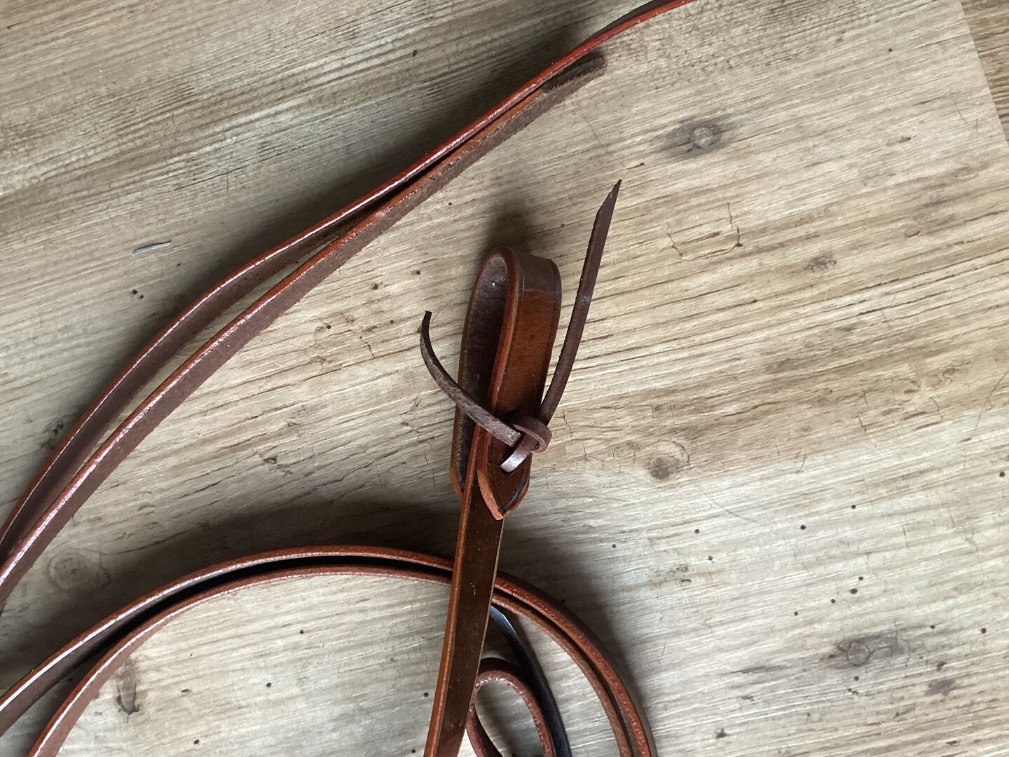 Western reins leather unused - Unused leather reins, thick leather, nice brown, can also add 2 snaps.