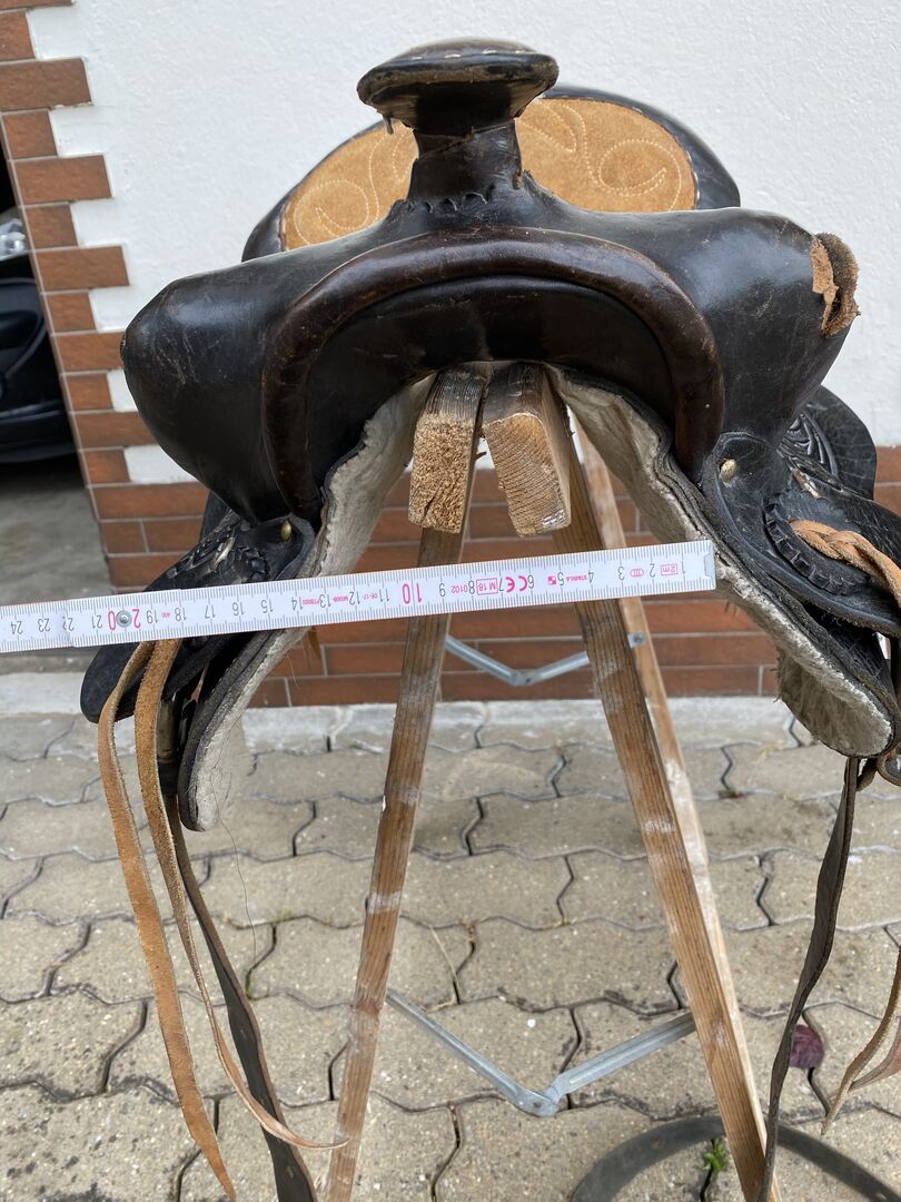 - Aging western saddle without stirrups. Sale by order. Ideal for training young horses! Make me an offer!