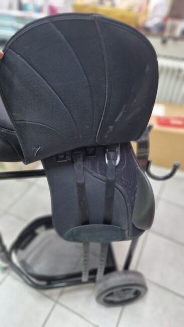 The saddle is used but well cared for and is in very good, functional condition. It has been cleaned regularly and treated with care. Trainer has put it on again for inspection, therefore a few mold fluff can still be seen in the pictures. They have been vacuumed!